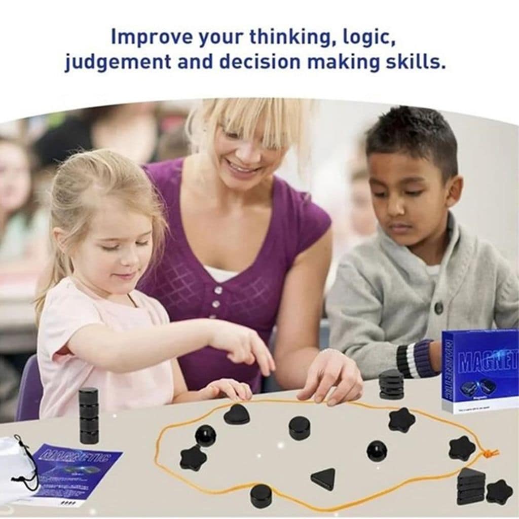 Spillet bidrar til å utvikle konsentrasjon, logisk tenkning og problemløsningsevner. Den magnetiske designen sørger for at brikkene sitter stabilt på brettet, noe som gjør spillet perfekt både hjemme og på reise. Den kompakte størrelsen gjør det enkelt å ta med seg.