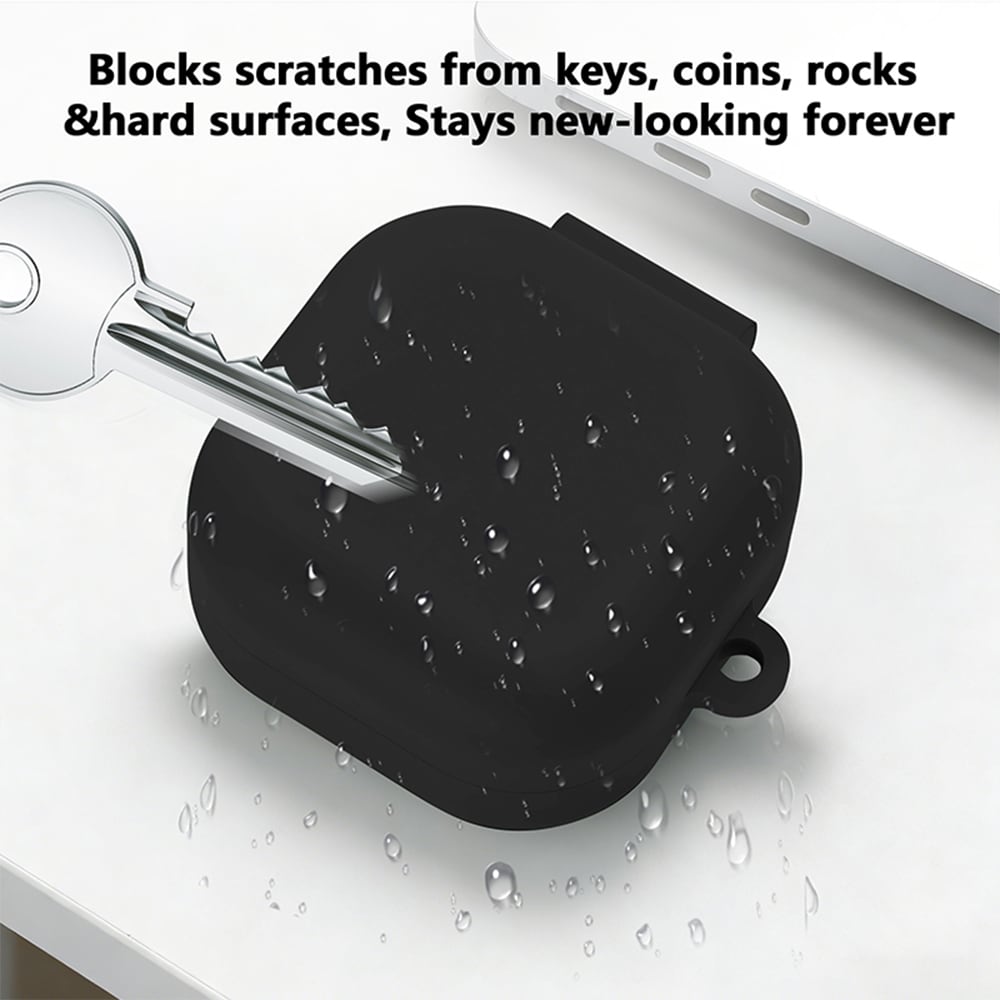 Beskyttende silikondeksel til Samsung Galaxy Buds 4 Pro. Dekselet er laget av støtdempende silikon som beskytter godt mot riper, fall og hverdagslige støt. Silikonmaterialet gir et godt grep og sørger for at dekselet ikke sklir ut av hånden, lommen eller av bordet. Med den medfølgende karabinkroken kan du enkelt feste øreproppene dine der det passer best – på vesken, beltet eller sekken.