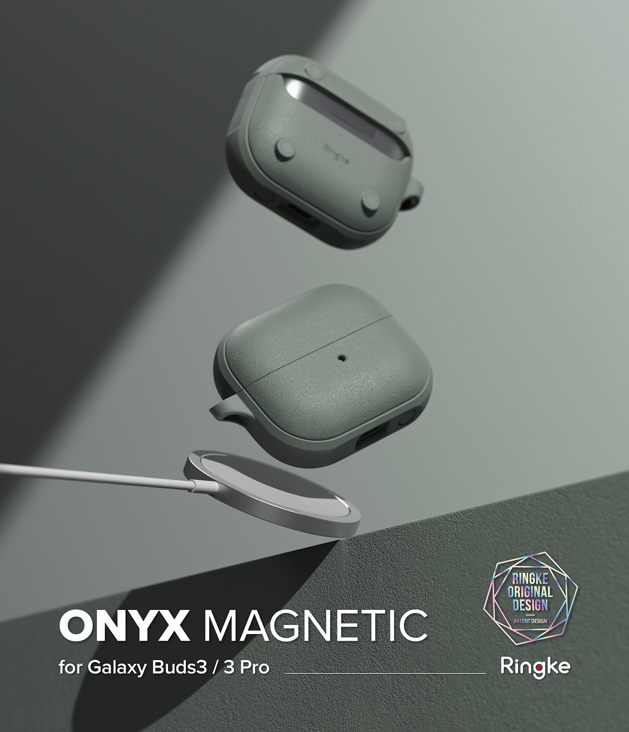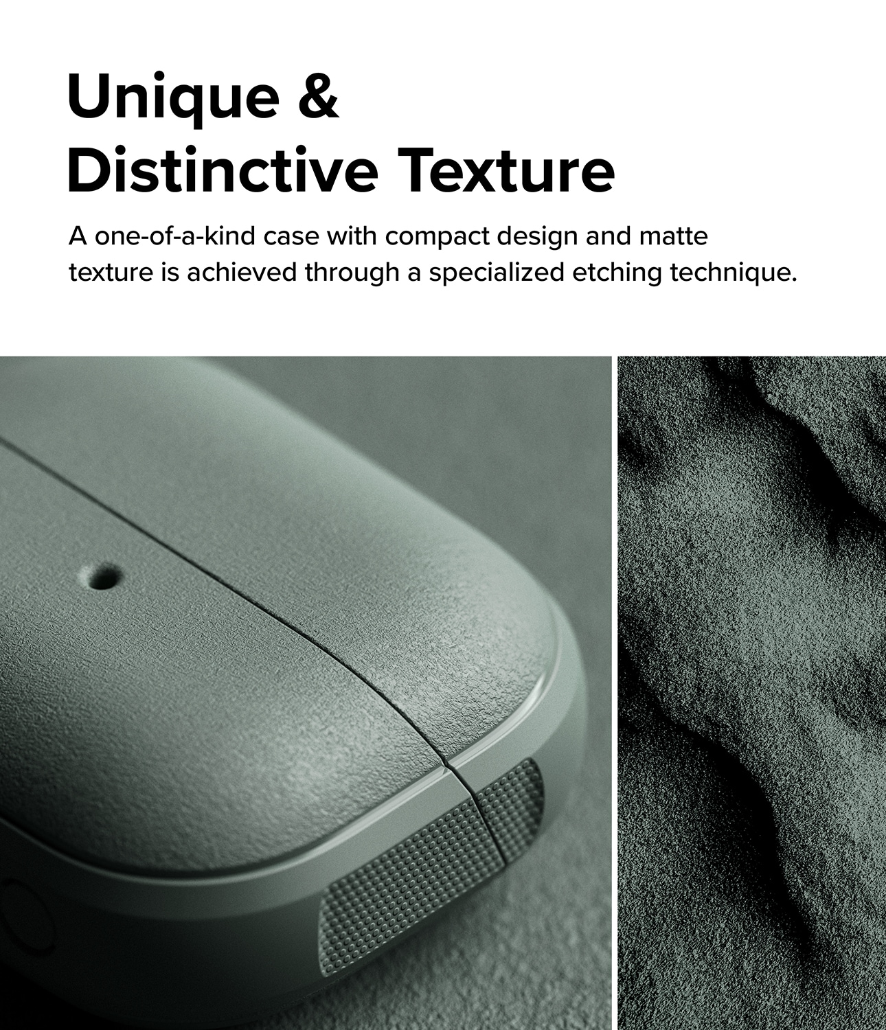Tøft deksel med MagSafe og karabinkrok for Samsung Galaxy Buds 3 fra Ringke. Dekselet har et stilig design og gir god støtbeskyttelse. Det er laget av fleksibel og slitesterk TPU med en unik matt, granulær tekstur som både føles behagelig å holde i og motvirker sklifare og fingeravtrykk.