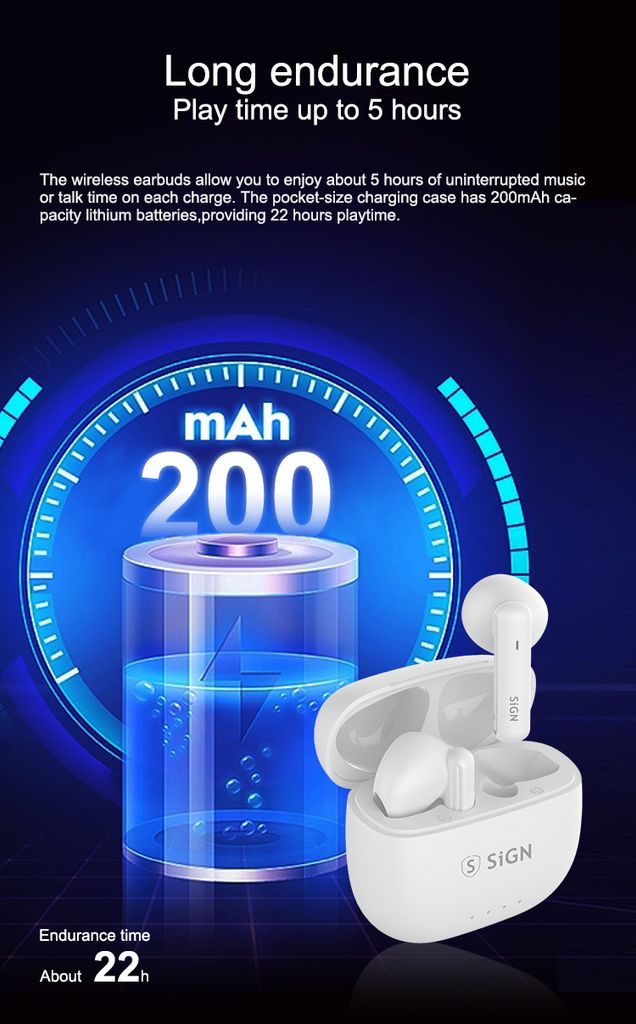 SiGN Ultra Pods trådløse hodetelefoner gir en stabil og høy lydkvalitet for Android og iOS-enheter som iPhone, Samsung og Huawei. Med Bluetooth 5.4 får du en rask, stabil og energieffektiv tilkobling med rekkevidde på opptil 10 meter. Hodetelefonene støtter lydformatene SBC og AAC, noe som sikrer klar og balansert lyd. ENC støydemping reduserer bakgrunnsstøy og forbedrer samtalekvaliteten, mens 10 mm høyttalerelementer leverer et frekvensområde fra 20Hz til 20KHz. Batteritiden gir opptil 5 timers bruk og totalt 22 timer med ladeetuiet. Innebygd mikrofon og talestyring gjør det enkelt å hånd... Les mer