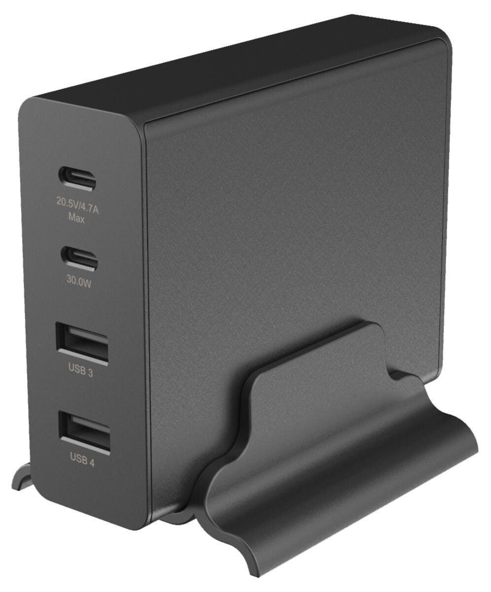 <p>- Ladestasjon med fire porter for flere enheter samtidig<br />