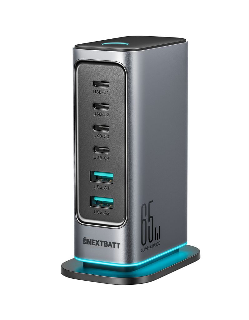 617686-in-1 65W GaN Multi USB-lader 4 USB-C + 2 USB-A Gråhttps://www.phonelife.no/ladere-og-kabler/ladere/usb-c-ladere/6-in-1-65w-gan-multi-usb-lader-4-usb-c-2-usb-a-gra?channelCountry=NOhttps://www.phonelife.no/pub_images/original/0_-_-_5_-_-_NB-TCM02.jpgInStock439NOK/ladere-og-kabler/ladere/usb-c-ladereNEXTBATT<p>NEXTBATT 6-i-1 GaN multi USB-lader 65W er en kraftig og effektiv ladeløsning for smarttelefoner, nettbrett og bærbare datamaskiner. Med fire USB-C-porter og to USB-A-porter kan du lade opptil seks enheter samtidig med en total effekt på opptil 65W. USB-C-porten støtter hurtiglading og er egnet for kompatible bærbare datamaskiner og andre USB-C-enheter. Den avanserte GaN-teknologien sikrer stabil lading, høy effektivitet og redusert varmeutvikling. Laderen har universell kompatibilitet med ulike enheter og en 1,5 meter kabel for fleksibel bruk hjemme eller på kontoret. Innebygd beskyttelse mot overstrøm og overspenning gir trygg lading.</p>