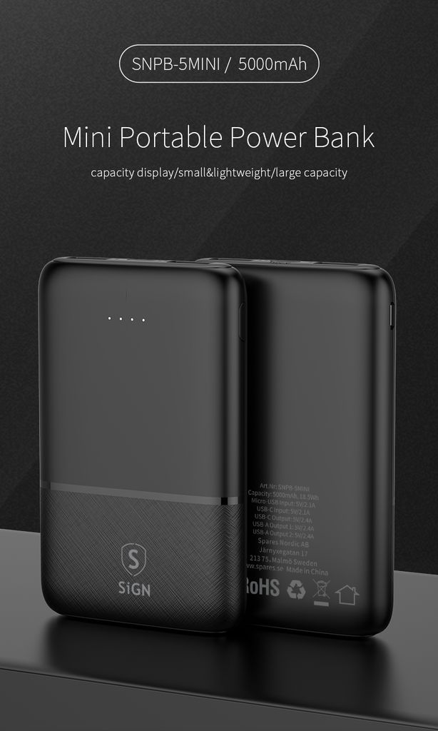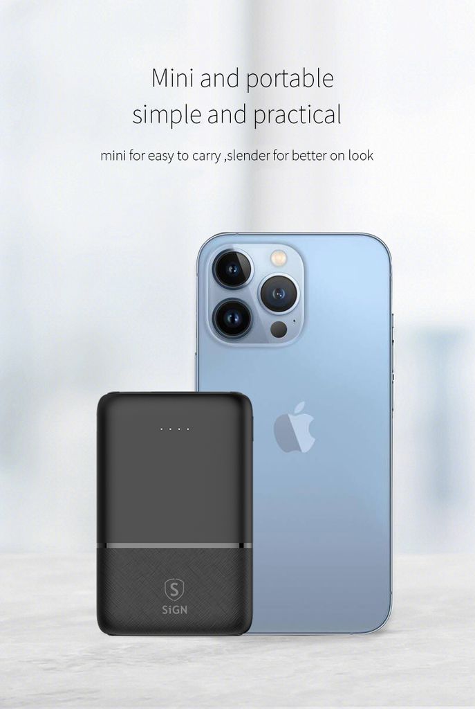 SiGN Mini Powerbank 5000mAh er en kompakt og praktisk ladeløsning for smarttelefoner og andre USB-kompatible enheter. Den tynne og lette konstruksjonen gjør den enkel å bære i lommen, vesken eller jakken, noe som gjør den egnet for daglig bruk, reiser og pendling. Batterikapasiteten på 5000mAh gir tilstrekkelig energi til å lade enheten din ved behov.