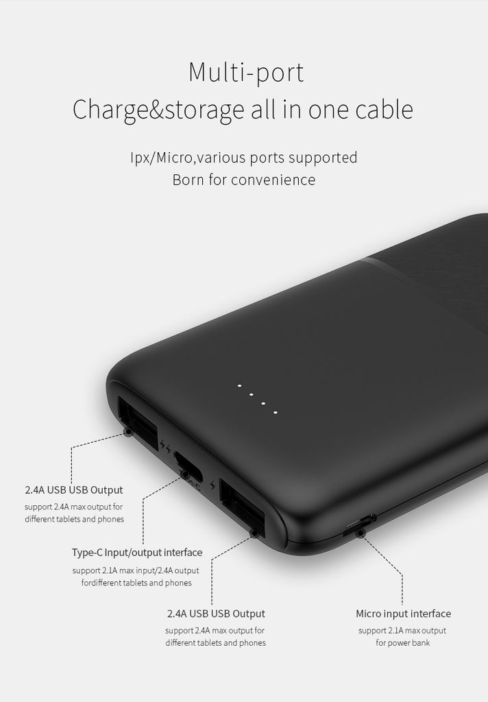 Powerbanken har én USB-C-utgang og to USB-A-utganger, slik at du kan lade opptil tre enheter samtidig. USB-C-porten brukes også til å lade powerbanken. Den integrerte LED-indikatoren viser ladestatus og gjør det enkelt å se batterinivå... Les mer