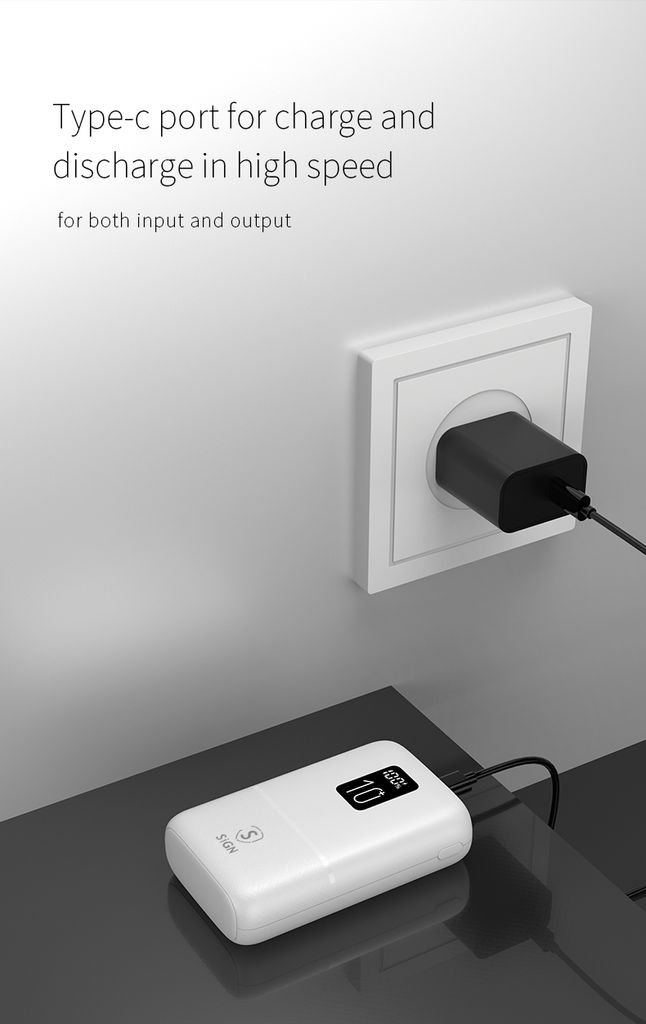 SiGN Mini Q.C Powerbank med 10000mAh kapasitet er en kompakt og praktisk ladeløsning for smarttelefoner, nettbrett og andre USB-kompatible enheter. Den høye batterikapasiteten gjør det mulig å lade enheter flere ganger, samtidig som den kompakte størrelsen gjør den enkel å ta med i lommen, vesken eller på reise. Den er kompatibel med Apple, Samsung, Huawei og andre USB-ladede enheter.