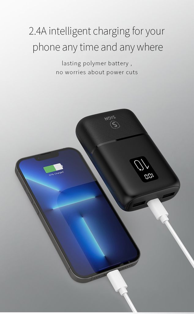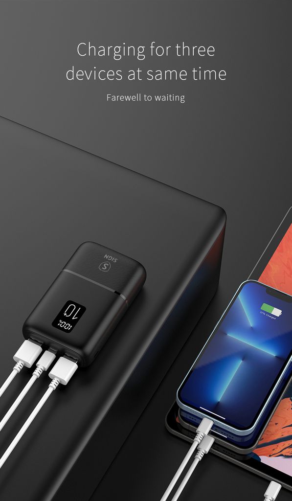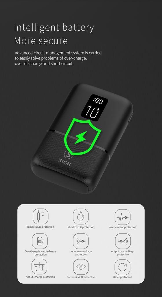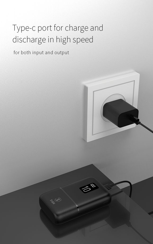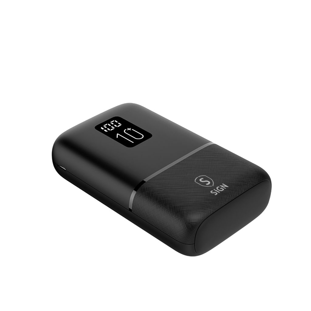 SiGN Mini Q.C Powerbank med 10000mAh kapasitet er en kompakt og praktisk ladeløsning for smarttelefoner, nettbrett og andre USB-kompatible enheter. Den høye batterikapasiteten gjør det mulig å lade enheter flere ganger, samtidig som den kompakte størrelsen gjør den enkel å ta med i lommen, vesken eller på reise. Den er kompatibel med Apple, Samsung, Huawei og andre USB-ladede enheter.