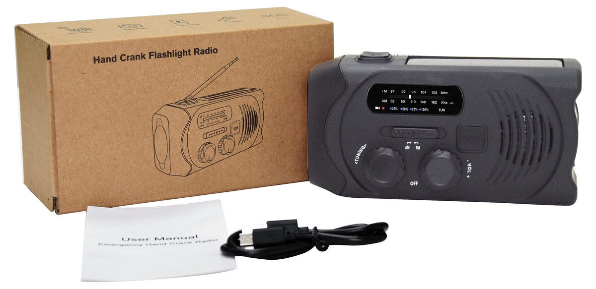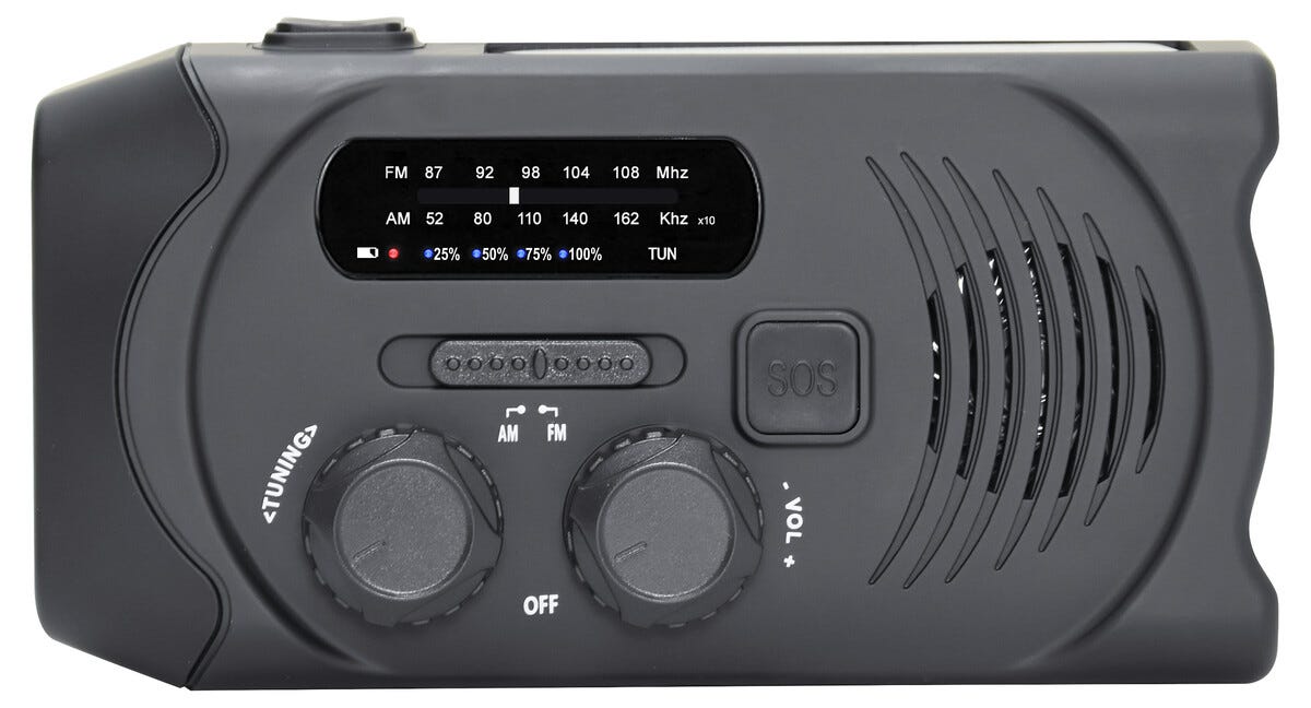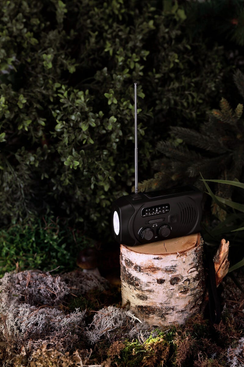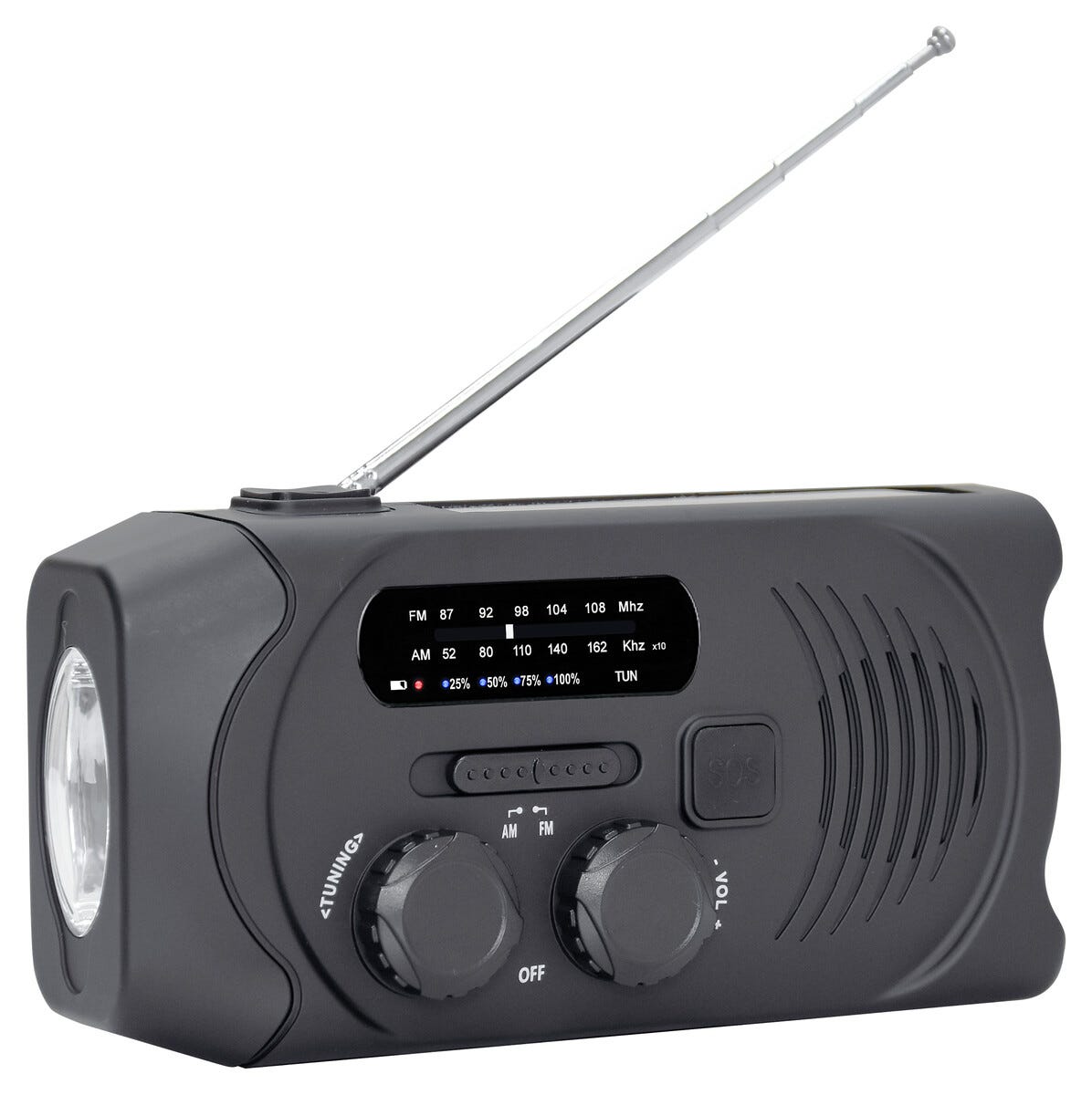 Exibel Nødradio med sveiv, solceller og powerbank er en praktisk dynamoradio som gir deg mulighet til å lytte til radio og få viktig informasjon på tur, under vandring eller i krisesituasjoner. Radioen kan lades manuelt med sveiv, via det innebygde solpanelet eller med USB-kabel før bruk. Den fungerer også som powerbank og har en USB-A-tilkobling for nødlading av mobiltelefon eller andre enheter. Det blinkende nødlyset og SOS-funksjonen med sirenelyd gjør at du kan bli sett og tilkalle hjelp ved behov. Kapslingsgrad IPX3 gjør at radioen kan brukes i lett regn.