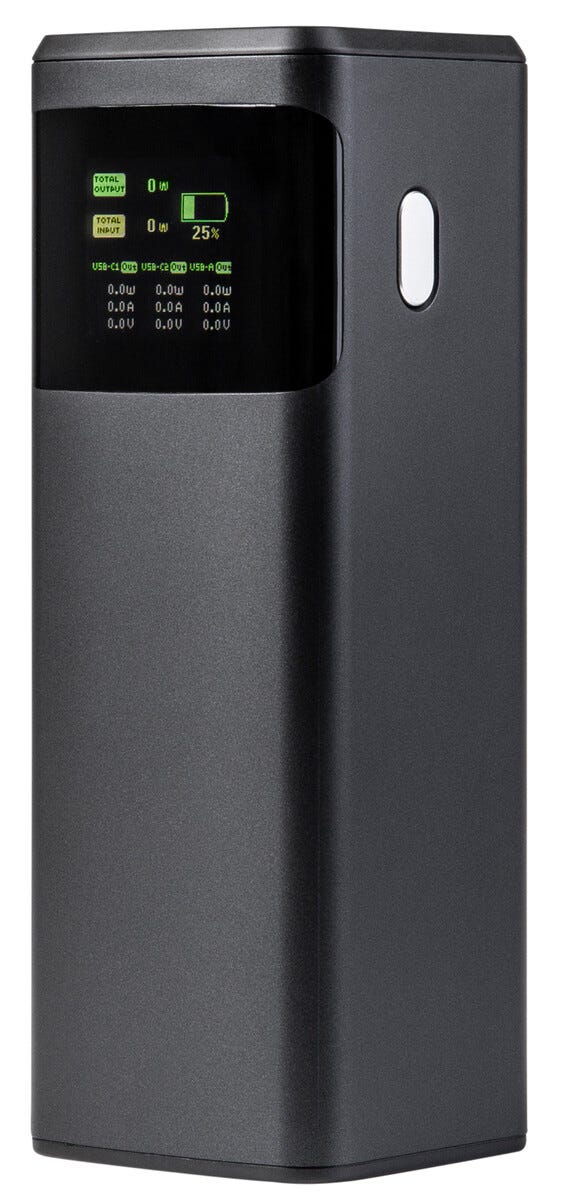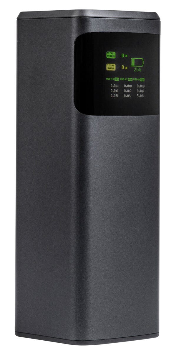 62167Powerbank med display 24000 mAh USB-A + USB-C 140W Svarthttps://www.phonelife.no/ladere-og-kabler/powerbanks/powerbank-med-display-24000-mah-usb-a-usb-c-140w-svart?channelCountry=NOhttps://www.phonelife.no/pub_images/original/68762390331422.jpgInStock999NOK/ladere-og-kabler/powerbanksClas Ohlson<p>Kraftig og høyytelses powerbank med kapasitet på 24000 mAh som gjør det enkelt å lade flere enheter samtidig når du er på farten. Med to USB-C-porter som støtter Power Delivery 3.1 får du rask og effektiv hurtiglading opptil 140 W for kompatible mobiltelefoner, nettbrett og bærbare PC-er. Den ekstra USB-A-porten med Quick Charge opptil 18 W gir stabil lading til andre USB-enheter. Det smarte digitale displayet viser tydelig batterinivå og aktuell ladeeffekt i sanntid slik at du alltid har full kontroll over energien. Den medfølgende USB-C til USB-C ladekabelen muliggjør maksimal ladehastighet. En pålitelig powerbank som kombinerer høy kapasitet, rask teknologi og praktisk funksjon i hverdagen.</p>
