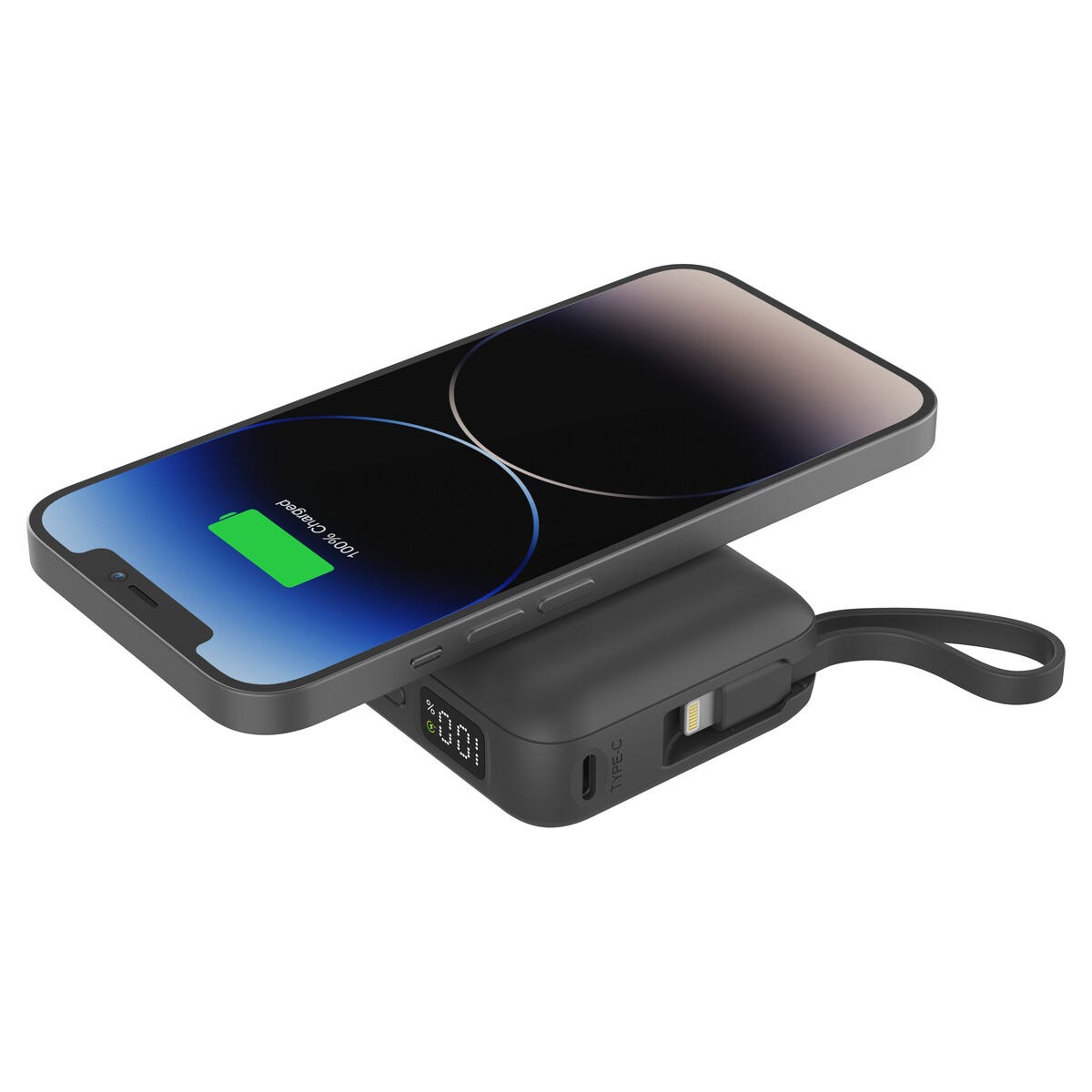 62148Powerbank med trådløs lading og innebygde kabler 10000 mAh 15W Svarthttps://www.phonelife.no/ladere-og-kabler/powerbanks/powerbank-med-tradls-lading-og-innebygde-kabler-10000-mah-15w-svart?channelCountry=NOhttps://www.phonelife.no/pub_images/original/68734968823838.jpgInStock519NOK/ladere-og-kabler/powerbanksClas Ohlson<p>Kompakt og kraftig powerbank med kapasitet på 10000 mAh som gjør det enkelt å lade flere enheter samtidig både trådløst og via kabel. Med støtte for trådløs hurtiglading opptil 15 W for kompatible Android-enheter og 7,5 W for iPhone får du smidig lading uten ekstra tilbehør. De integrerte USB-C- og Lightning-kablene sørger for at riktig tilkobling alltid er tilgjengelig, samtidig som USB-A- og USB-C-porter gir mulighet for parallell lading av flere enheter. Powerbanken har en tydelig skjerm som viser batteristatus og gir bedre kontroll over energinivået. Støtte for Power Delivery opptil 20 W via USB-C sikrer rask og stabil lading av mobiltelefoner, nettbrett og andre USB-enheter. En praktisk ladeløsning som kombinerer portabel design, smart funksjon og effektiv ytelse i hverdagen.</p>