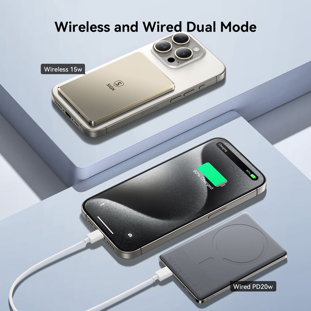 SiGN Magnetic Wireless Powerbank 5000mAh 20W Ultra Slim er en kompakt og effektiv powerbank med støtte for både trådløs lading og hurtiglading via kabel. Den ultraslanke designen gjør den enkel å bære i lommen eller vesken, perfekt for reiser, arbeid og daglig bruk. Den magnetiske funksjonen sikrer stabil plassering og pålitelig lading av kompatible enheter.