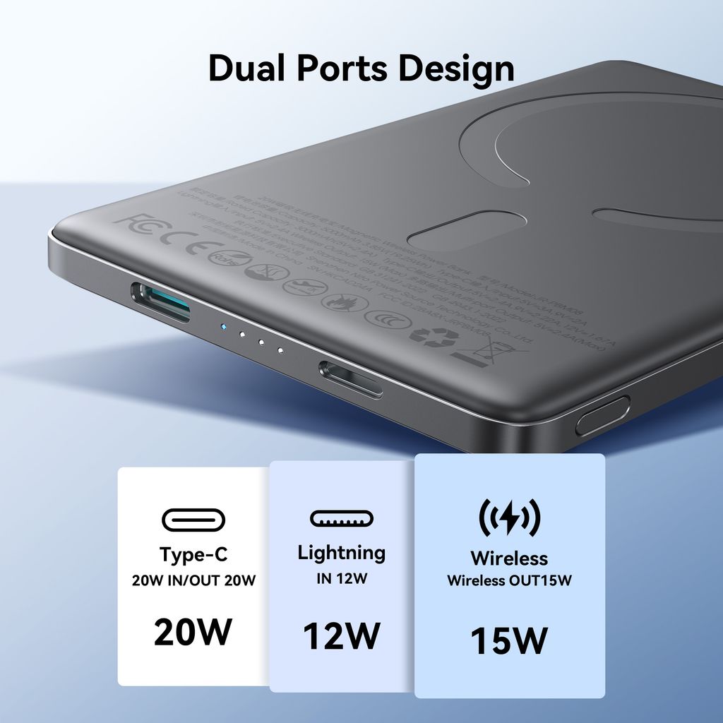 <p>- Magnetisk trådløs powerbank med ultratynt design<br />