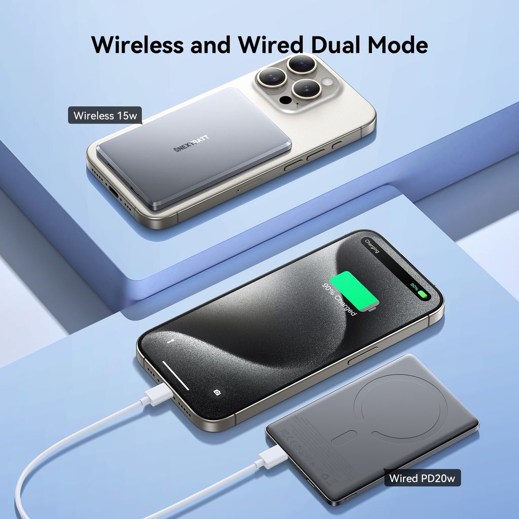 61764Trådløs Magnetisk Ultra Slim Powerbank 5000mAh 20W Svarthttps://www.phonelife.no/ladere-og-kabler/powerbanks/tradls-magnetisk-ultra-slim-powerbank-5000mah-20w-svart?channelCountry=NOhttps://www.phonelife.no/pub_images/original/0_-_-_5_-_-_NB-PBM08.jpgInStock339NOK/ladere-og-kabler/powerbanksNEXTBATT<p>NEXTBATT magnetisk trådløs powerbank 5000mAh 20W har et ultratynt design som gir et komfortabelt grep og gjør den enkel å ta med. Den sterke magnetiske tilkoblingen på 10 N holder telefonen sikkert på plass for stabil trådløs lading. Powerbanken støtter trådløs lading opptil 15W samt PD 20W hurtiglading via USB-C, noe som gir rask og effektiv lading av kompatible enheter. LED-indikatoren viser tydelig gjenværende batterinivå og ladestatus. Den støtter både trådløs og kablet lading og kan lade flere enheter. Lavstrømmodus gjør den egnet for lading av Bluetooth-hodetelefoner, smartklokker og aktivitetsarmbånd. Laget av brannsikkert PC- og ABS-materiale for sikker bruk.</p>