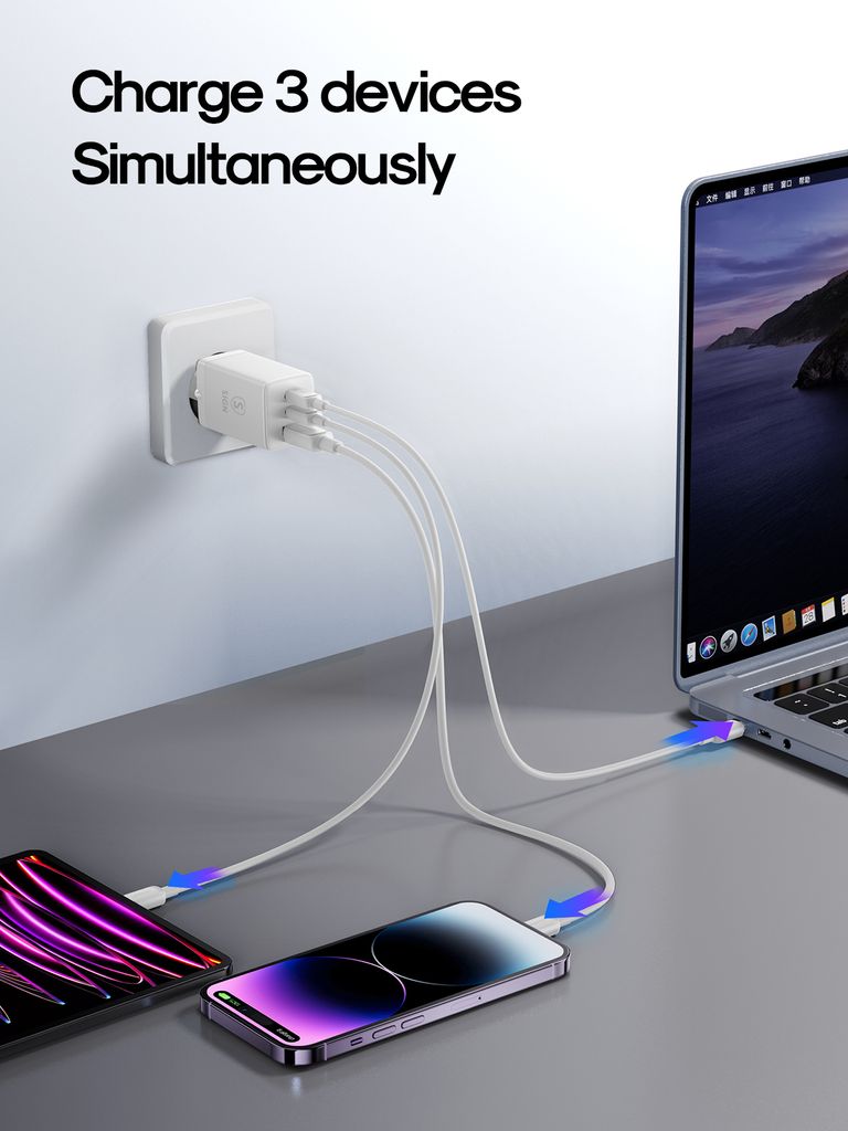 <p>- GaN hurtiglader med 2x USB-C og 1x USB-A<br />