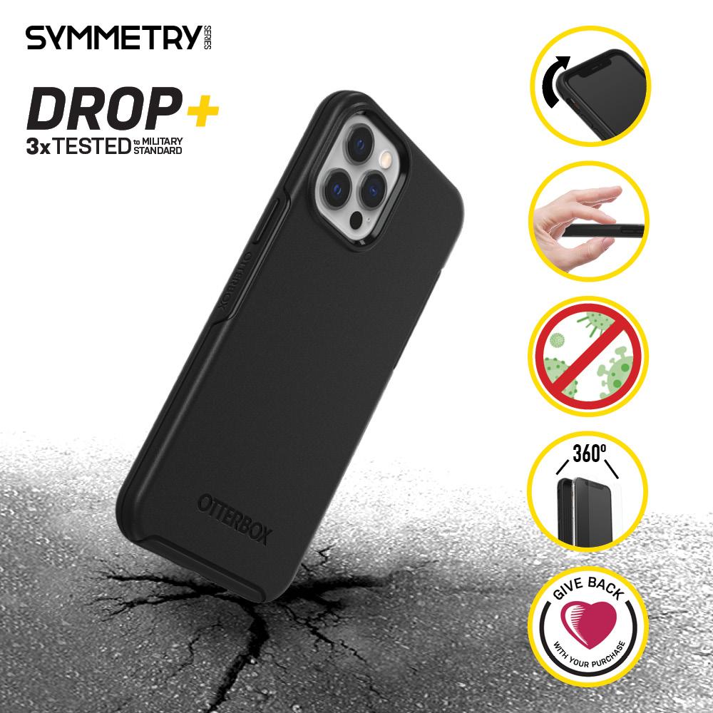 Slim, pent og slitesterkt Otterbox-deksel til Apple iPhone 12 Pro Max. Symmetry Case har sertifisert beskyttelse mot fall.