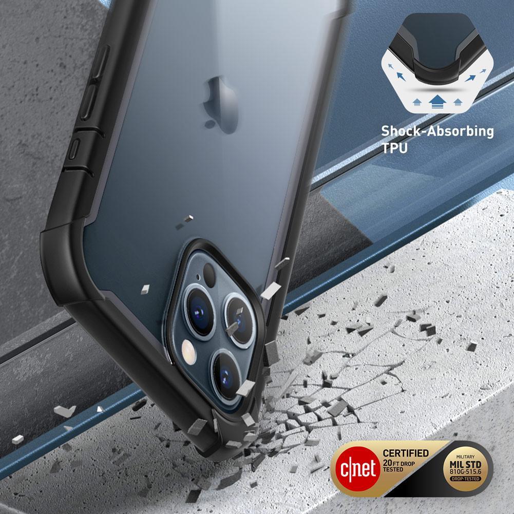 SUPCASE i-Blason heldekkende deksel med gjennomsiktig bakside og god støtbeskyttelse til iPhone 12 og iPhone 12 Pro. Skallet består av en bakside i polykarbonat med kanter i støtdempende TPU og en front i polykarbonat.