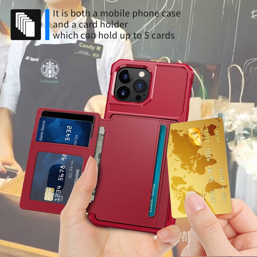 Støtdempende mobildeksel med skjult kortholder på baksiden. Dekselet har et stilig design og forsterkede hjørner for den beste beskyttelsen.