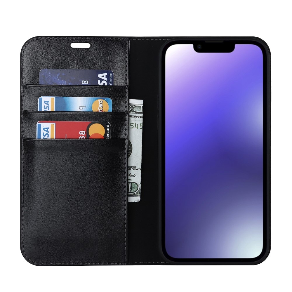 Beskytt din Apple iPhone 15 Plus med et etui i ekte skinn. Til tross for den slanke og smarte designen, har etuiet 3 kortlommer og 1 seddellomme på innsiden av lokket. Telefonen festes trygt i et fleksibelt deksel som holder den sikkert på plass.