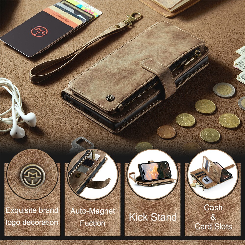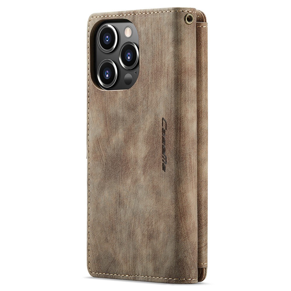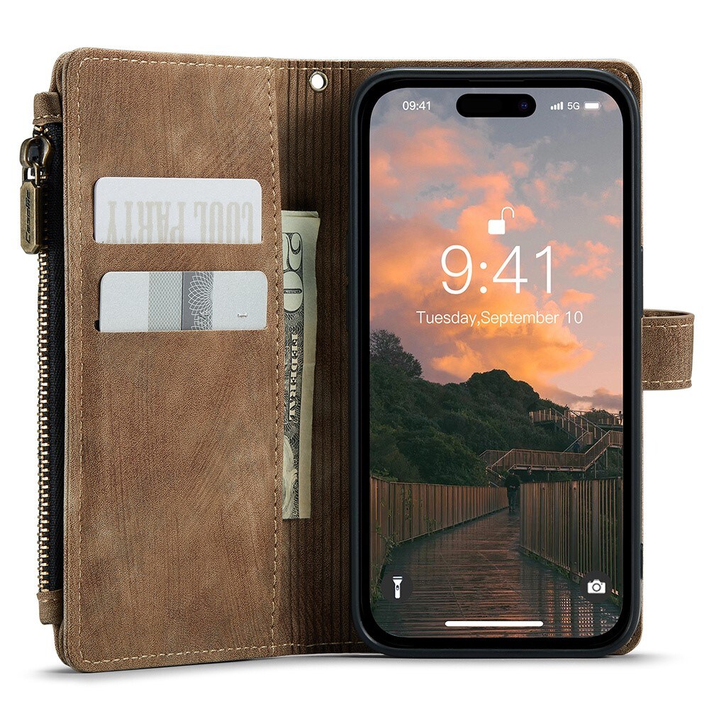 Mobiletui med ekstra romslig lommebok og mange kortlommer til Apple iPhone 15 Pro fra CaseMe. Lommeboken har 7 kortlommer, en seddellomme og et romslig myntrom med glidelås.