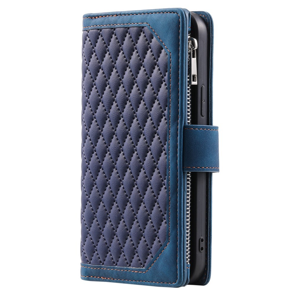 Multifunksjonelt mobiletui til Apple iPhone 15 med stilig vattert utside. Etuiet er laget av kunstskinn og har et støtdempende innerdeksel i TPU som gir god beskyttelse for mobilen din.