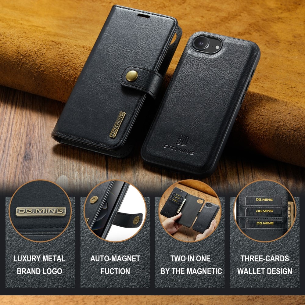DG.MING etui med avtagbart magnetiskt deksel til Apple iPhone 16e. Vesken har en klassisk og stilig design. Det avtagbare skallet betyr at du ikke trenger å bruke hele etui, for eksempel når du er hjemme eller på jobb.