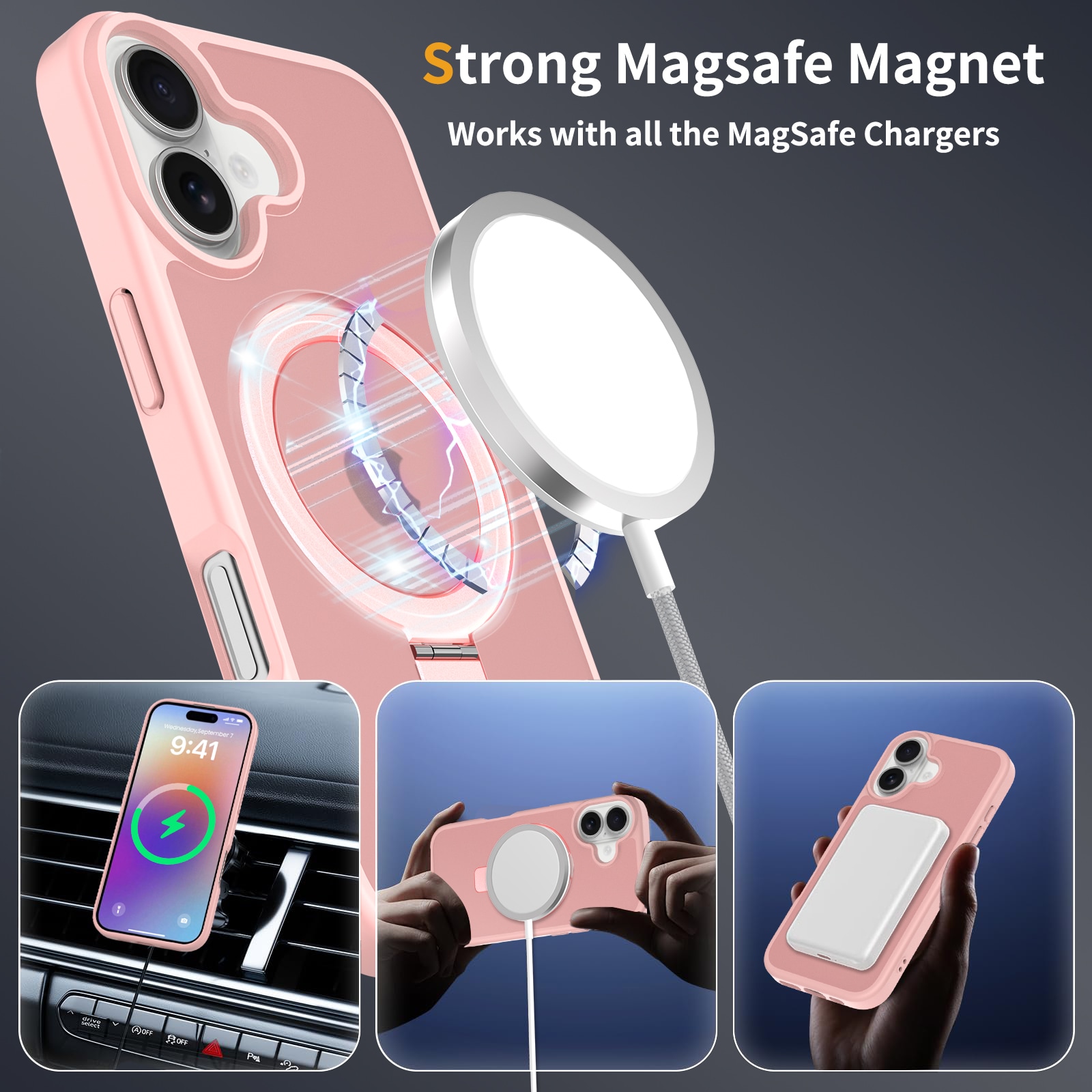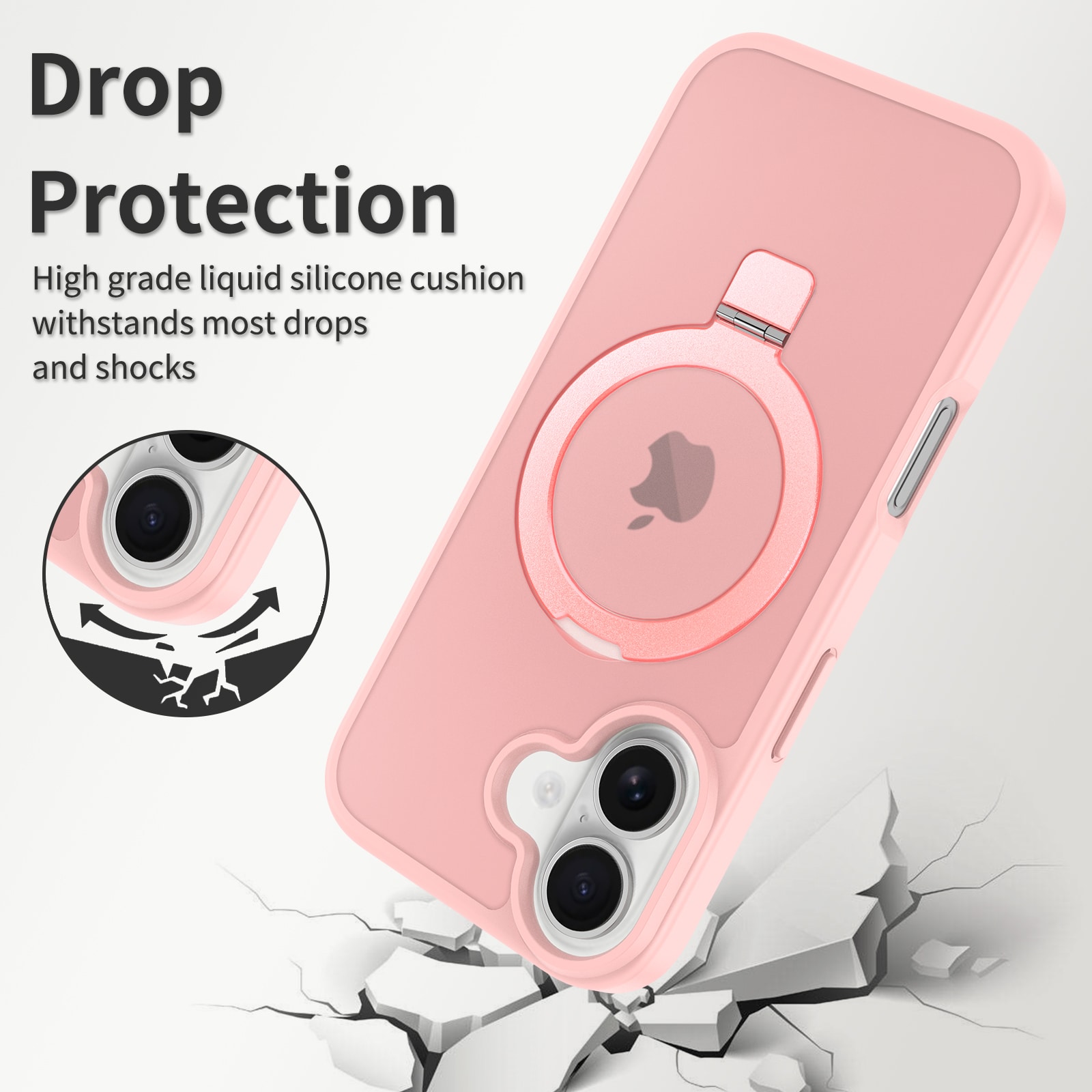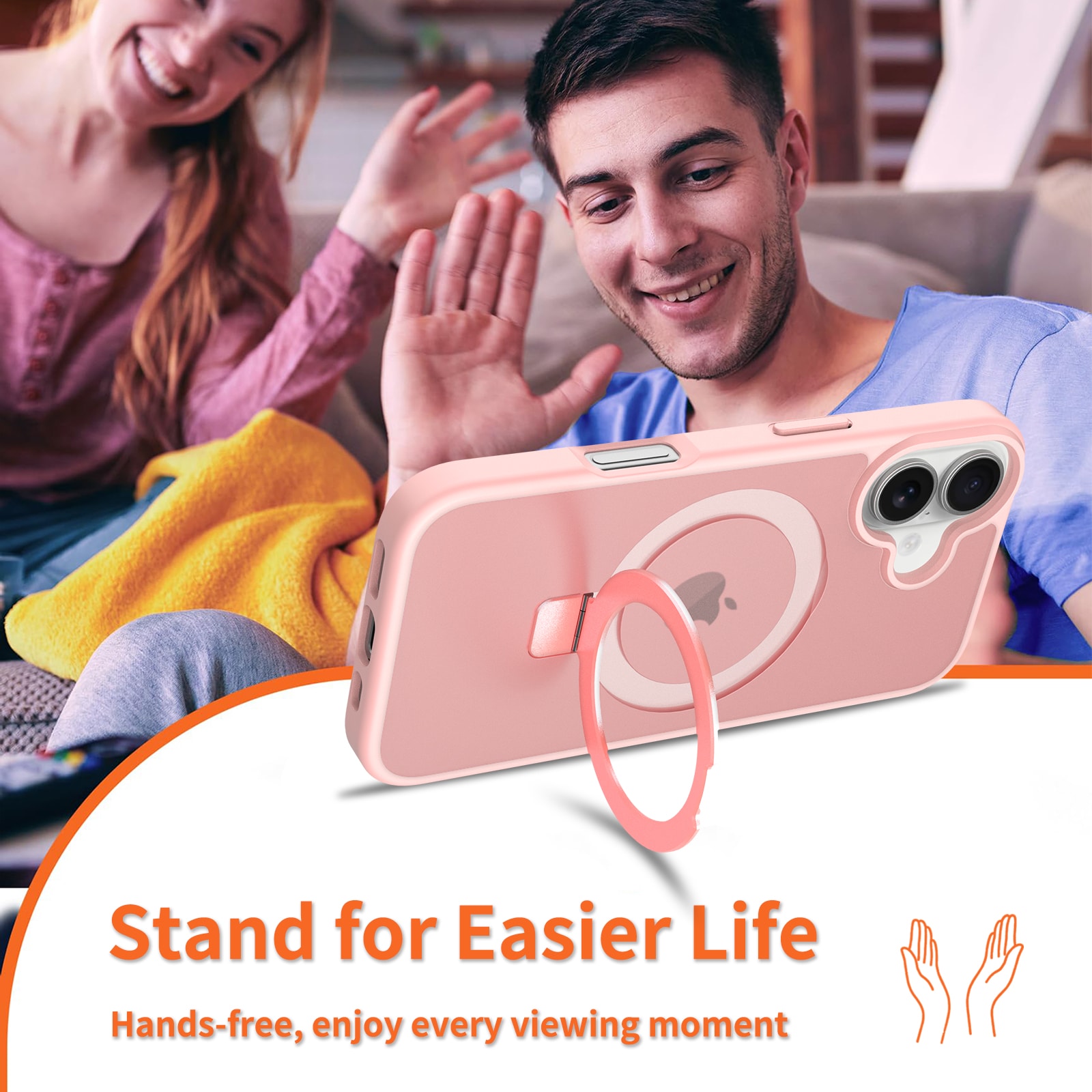 Mobildeksel med utfellbar MagSafe-ring for Apple iPhone 17. For å gi den beste beskyttelsen mot støt og fall, er dekselet todelt med en TPU-kjerne og et ytterlag i hard plast. Ringen på baksiden kan brettes ut for å gi et godt grep på telefonen. Ringen kan også danne et stativ for å se filmer, klipp eller spill.