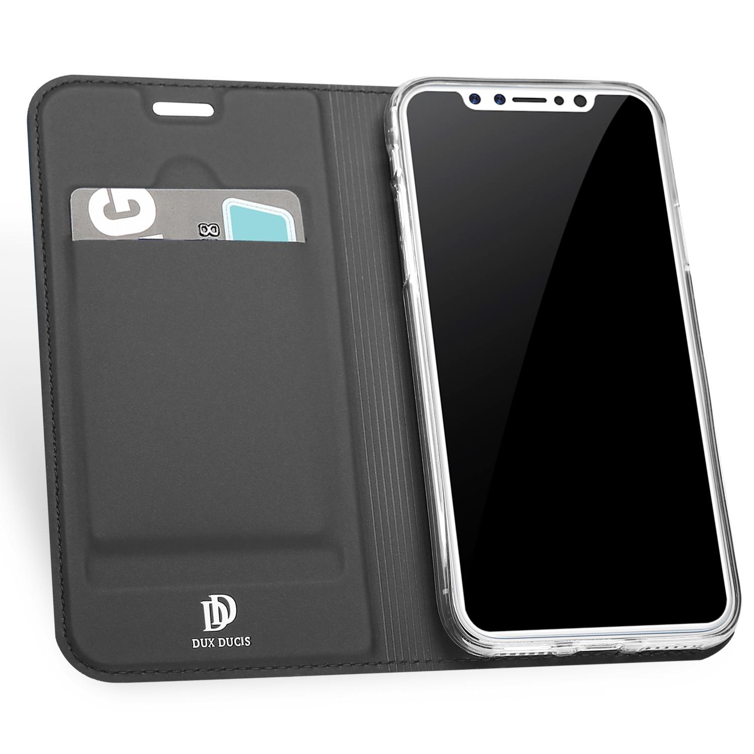 Tynt omslag med kortspor fra Dux Ducis til Apple iPhone X/XS. Til tross for sin slanke og lette design, beskytter denne vesken hele telefonen. Telefonen er ordentlig festet til det gjennomsiktige og støtabsorberende TPU-skallet.