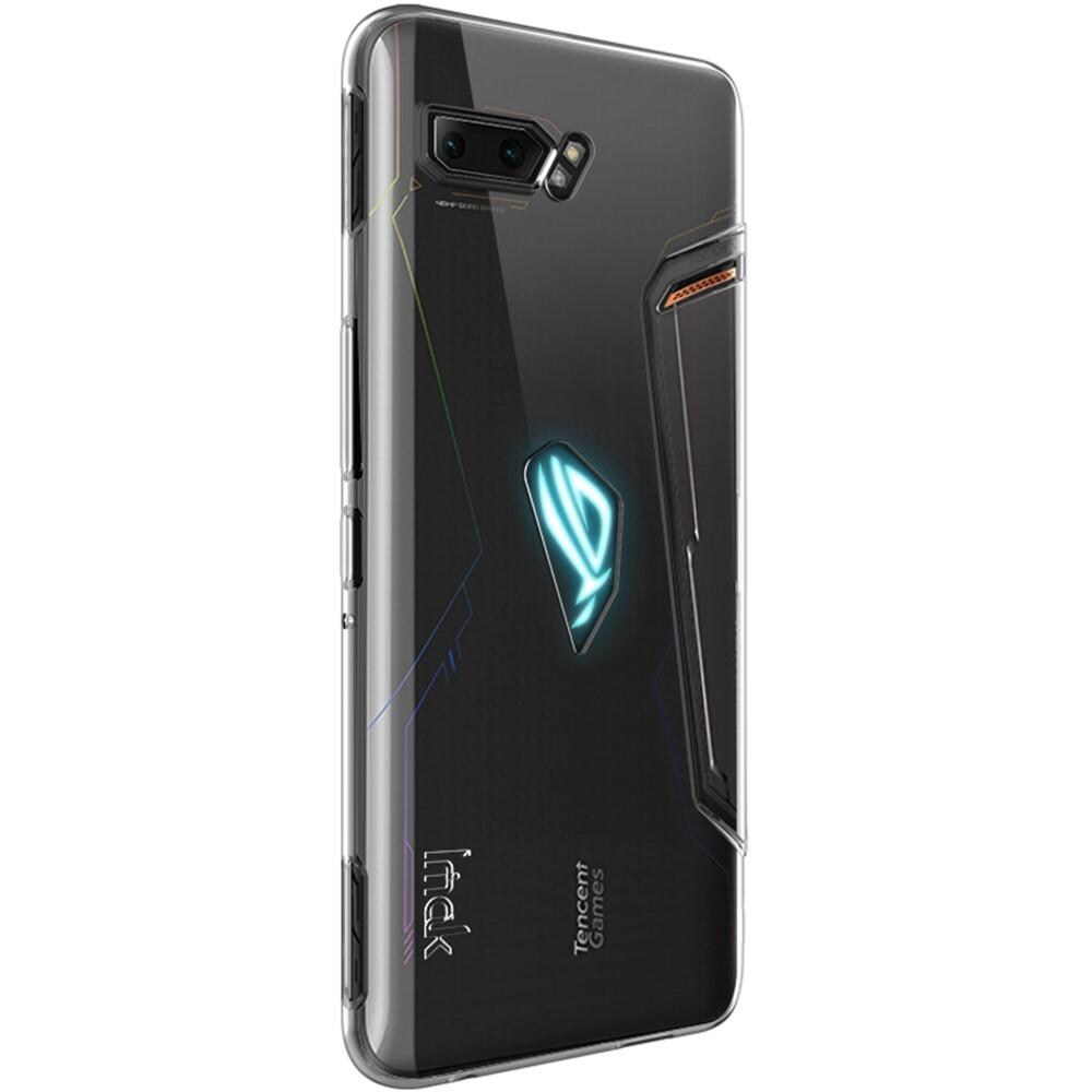Gjennomsiktig mobildeksel fra Imak til Asus ROG Phone II. Dekselet er helt gjennomsiktig for å vise frem telefonens originale design.