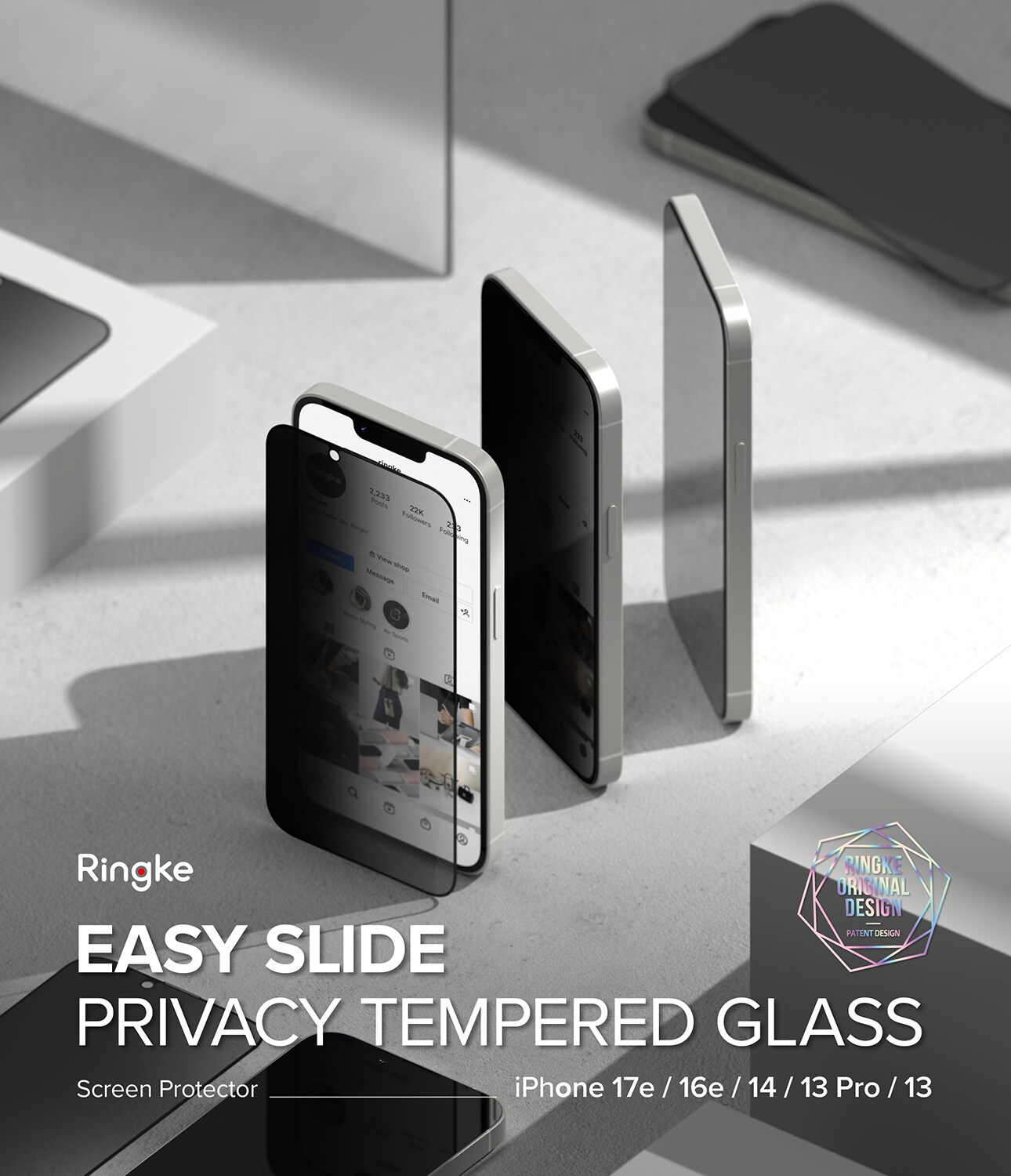 2-pakning med gjennomsiktige skjermbeskyttere med anti-spy-behandling i herdet glass til Apple iPhone 16e fra Ringke. Skjermbeskytteren er laget av herdet glass med høy hardhet, og personvernbehandlingen gjør innholdet på skjermen utydelig allerede fra en vinkel på 28°. Kantene er avrundet for å unngå skarpe kanter.