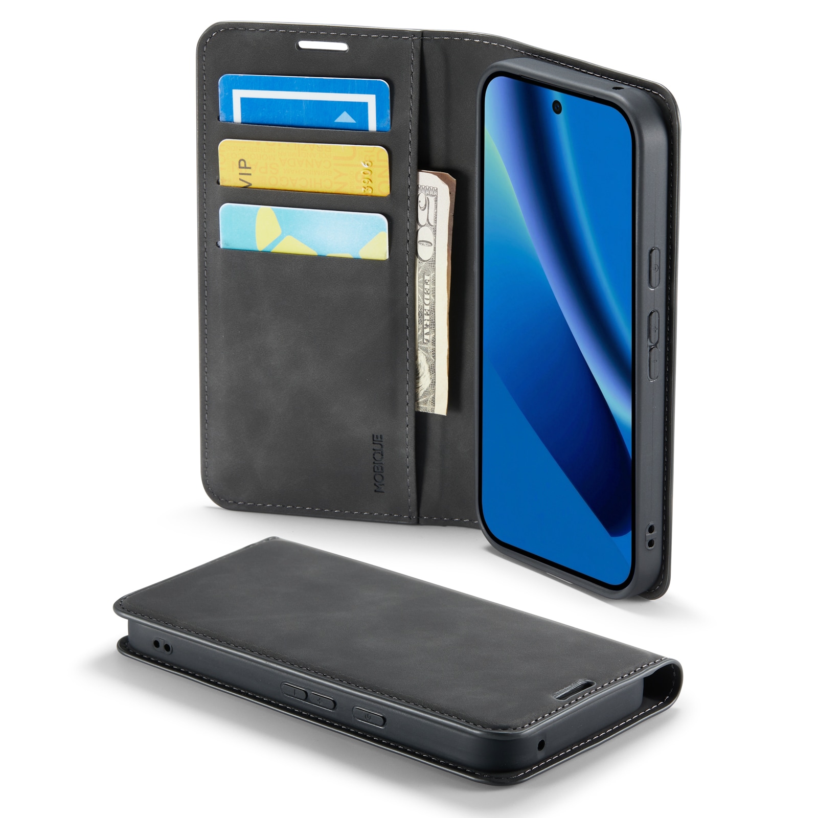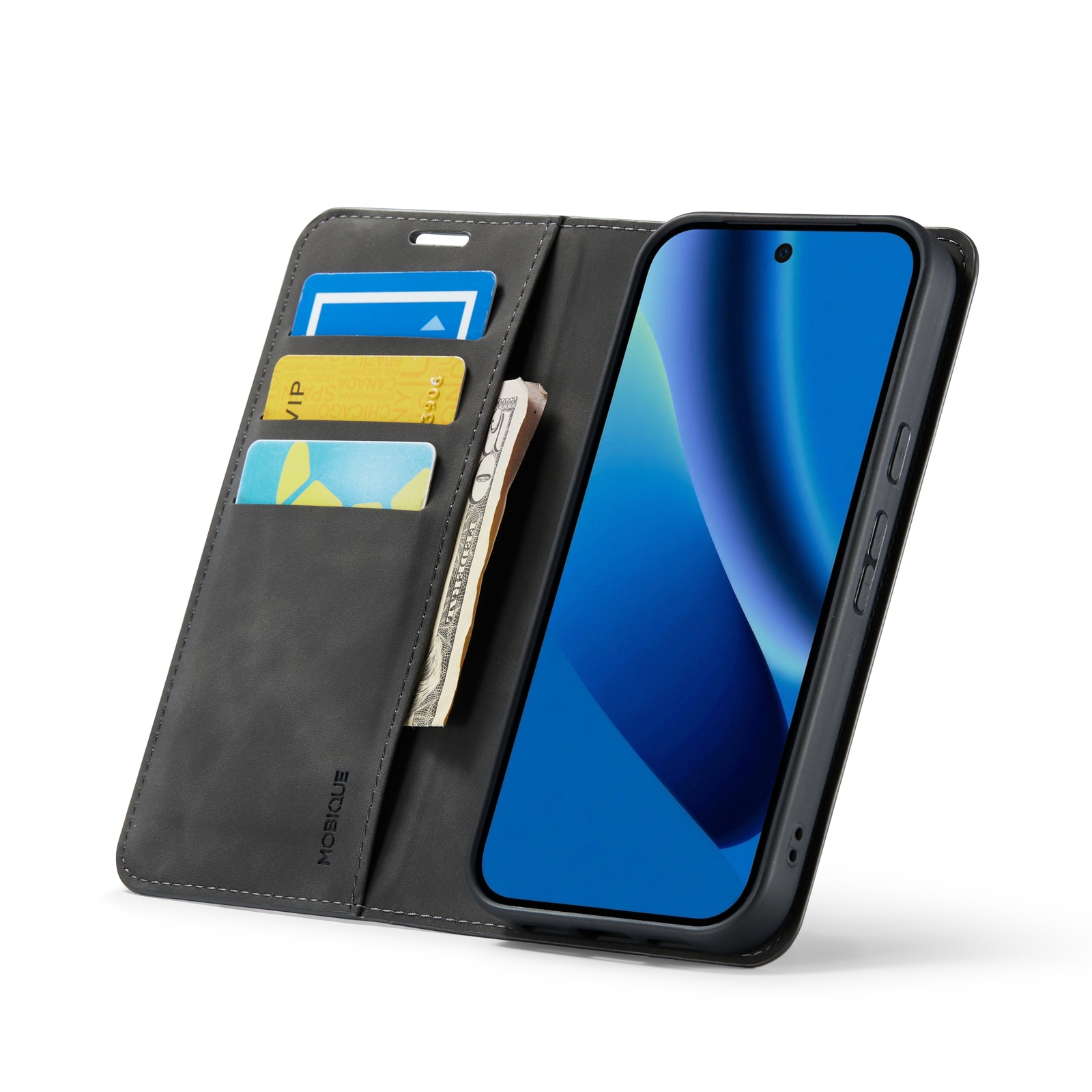 Stilrent og slankt mobilveske til Google Pixel 10a. Etuiet har et silkemykt omslag laget av slitesterkt kunstskinn og et innebygd deksel i støtdempende TPU. Lokket gir god beskyttelse mot riper på skjermen, mens det indre dekselet beskytter godt ved fall og støt.