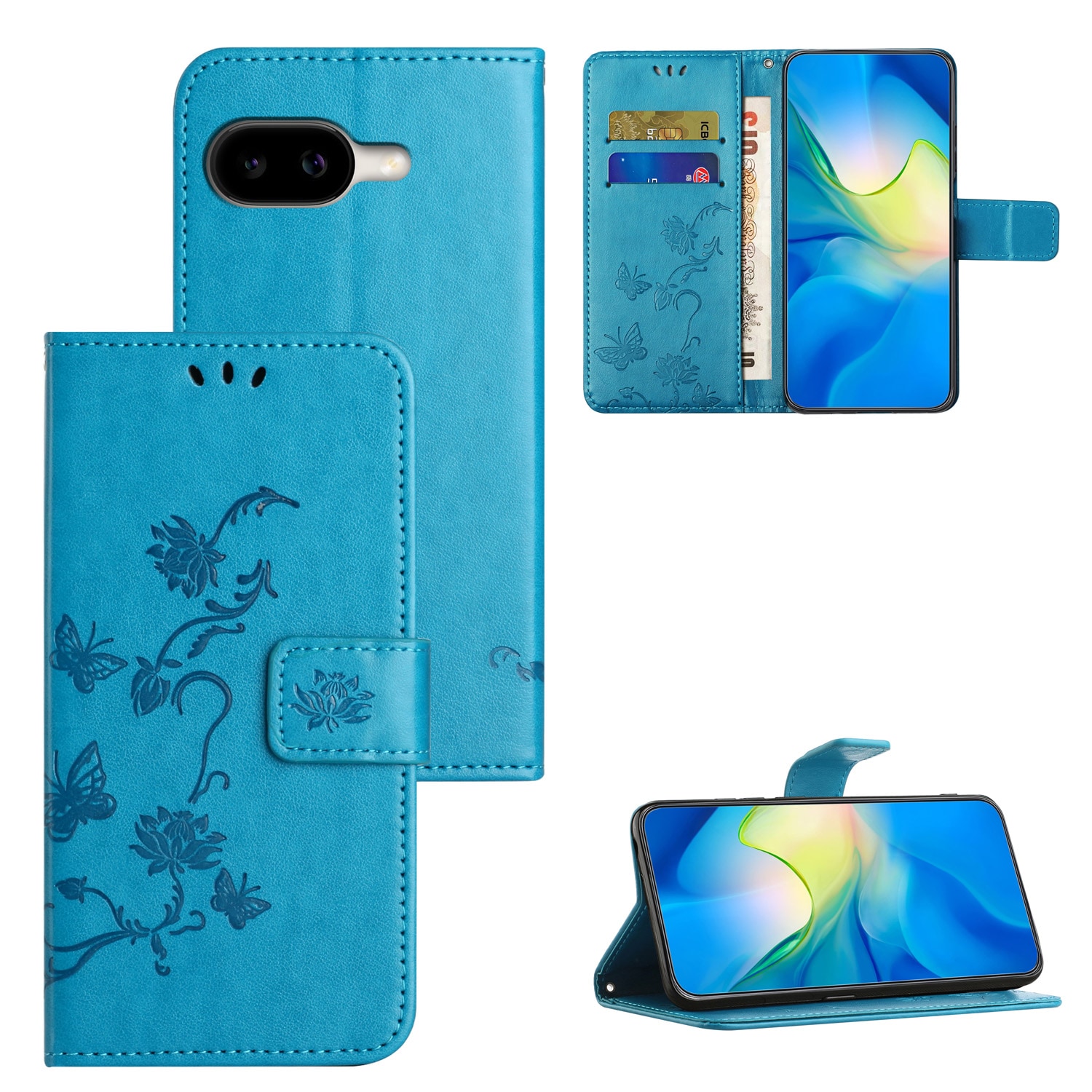Mobilveske med pregede sommerfugler og mønstre i læret til Google Pixel 10a. Vesken har et fint utseende og beskytter hele telefonen slik at du unngår skader, riper og smuss.