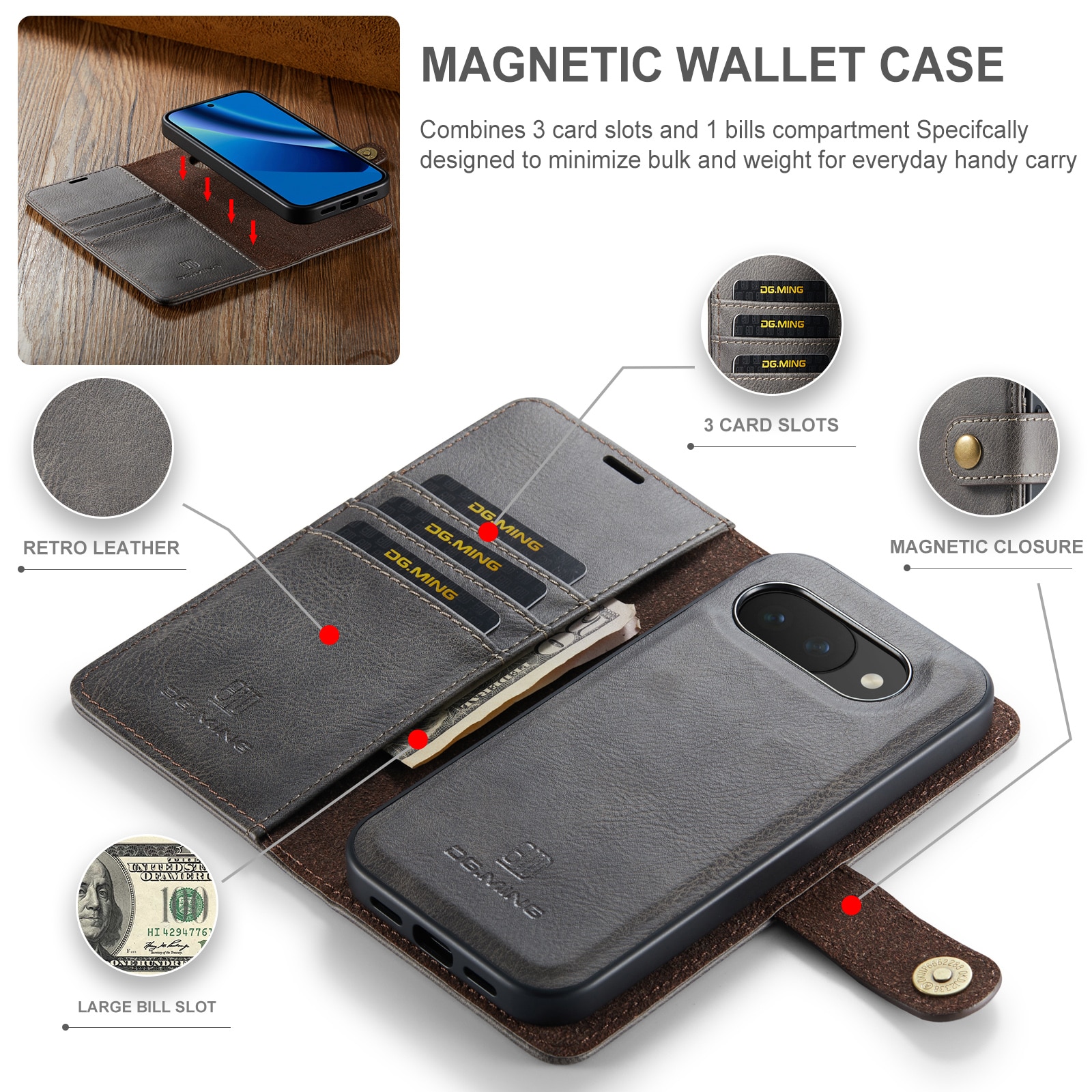 DG.MING etui med avtagbart magnetiskt deksel til Google Pixel 10a. Vesken har en klassisk og stilig design. Det avtagbare skallet betyr at du ikke trenger å bruke hele etui, for eksempel når du er hjemme eller på jobb.