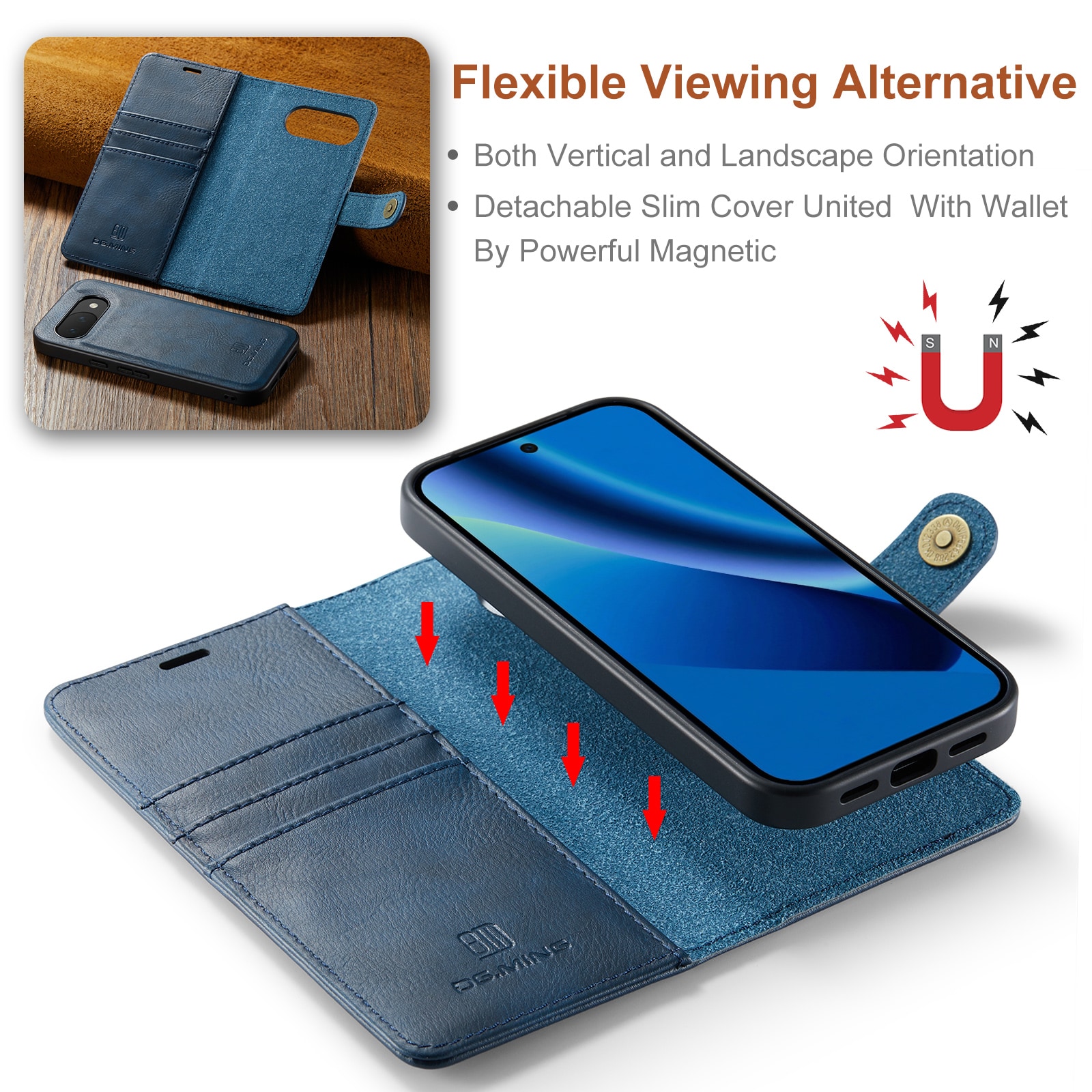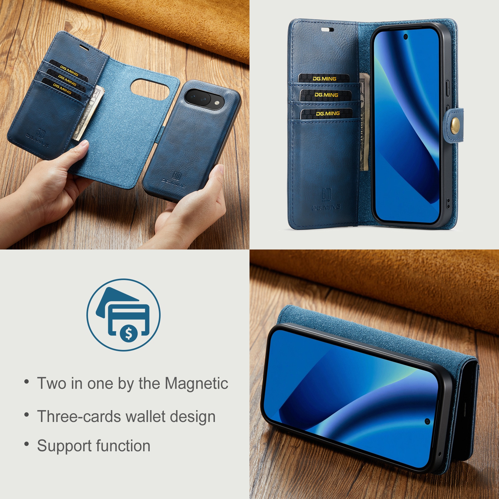 DG.MING etui med avtagbart magnetiskt deksel til Google Pixel 10a. Vesken har en klassisk og stilig design. Det avtagbare skallet betyr at du ikke trenger å bruke hele etui, for eksempel når du er hjemme eller på jobb.