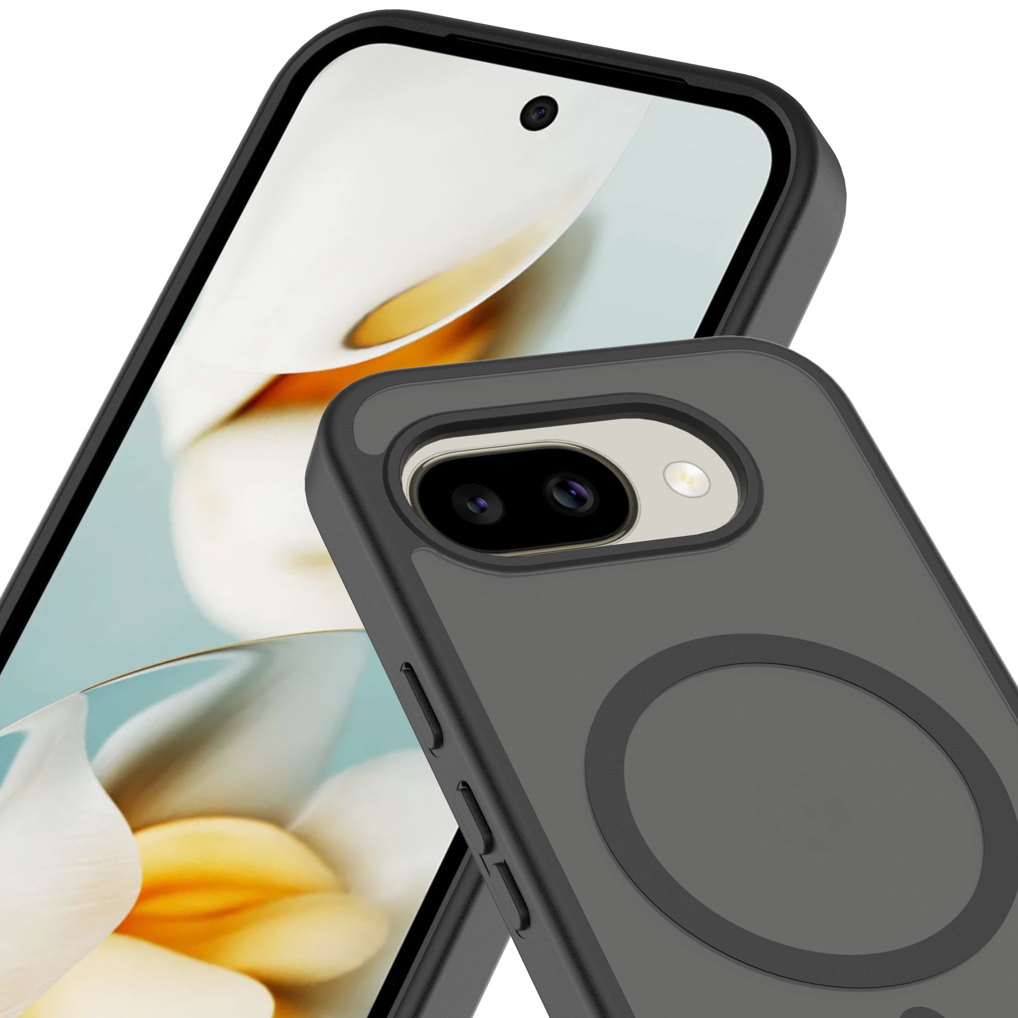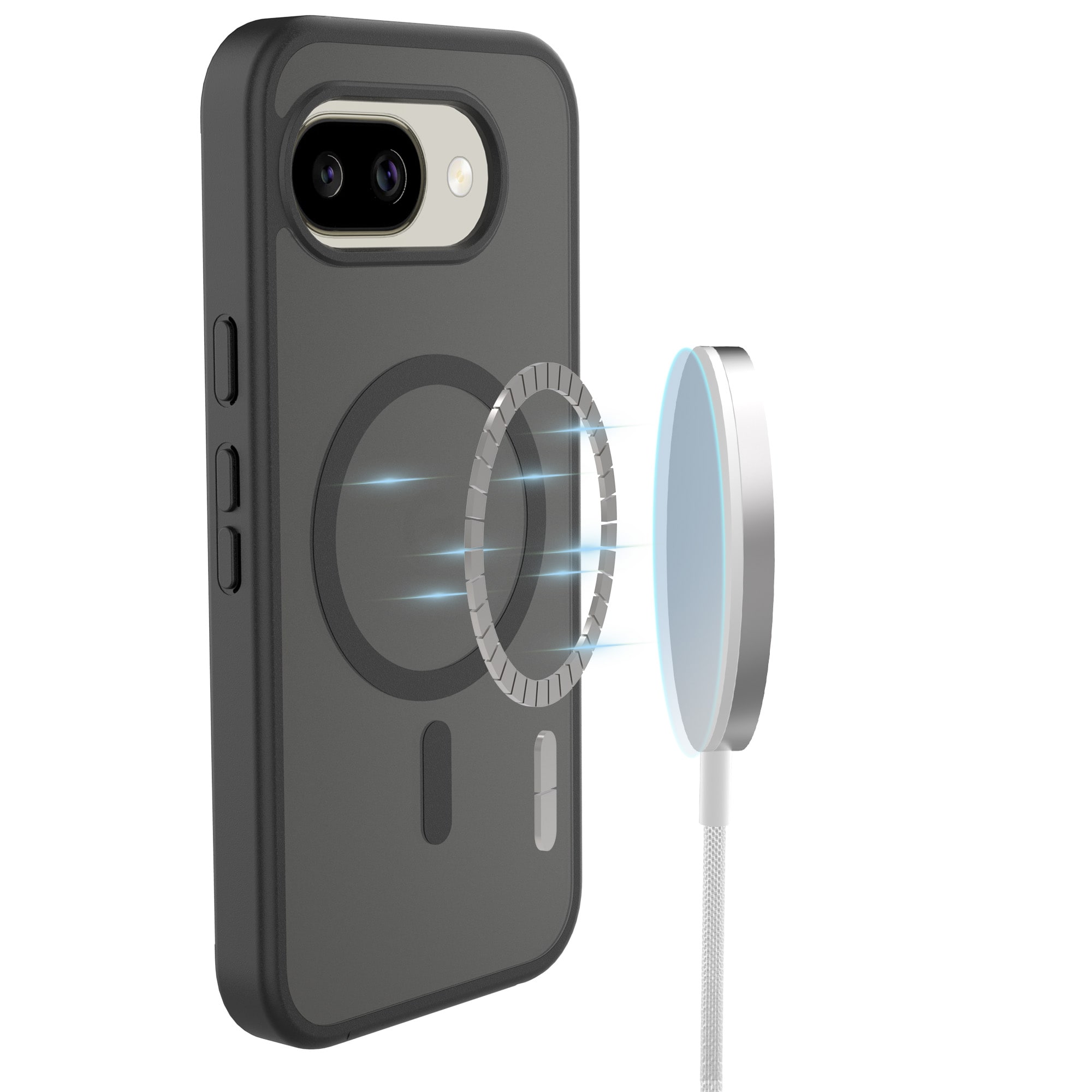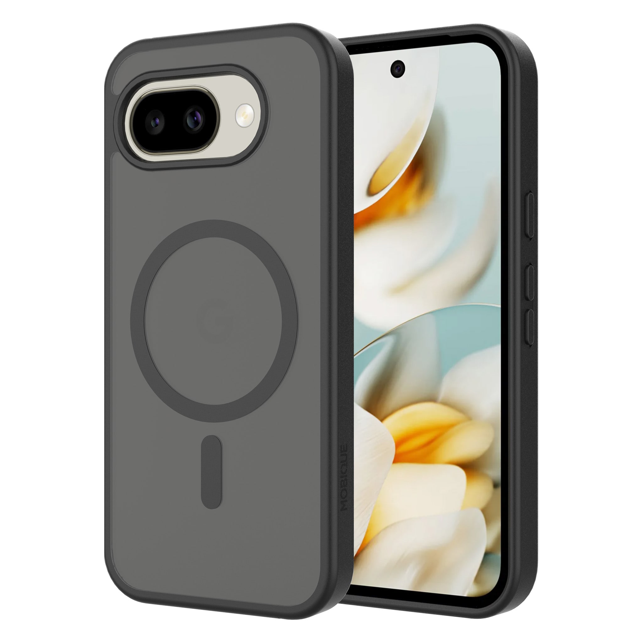 Hybridskall med magnetisk ring for Google Pixel 10a fra Mobique. Dekselet har en stilren frostet finish og er utstyrt med en magnetisk ring på baksiden. Ringen gjør det enkelt å bruke dekselet sammen med MagSafe-kompatibelt tilbehør, som ladere og kortholdere.