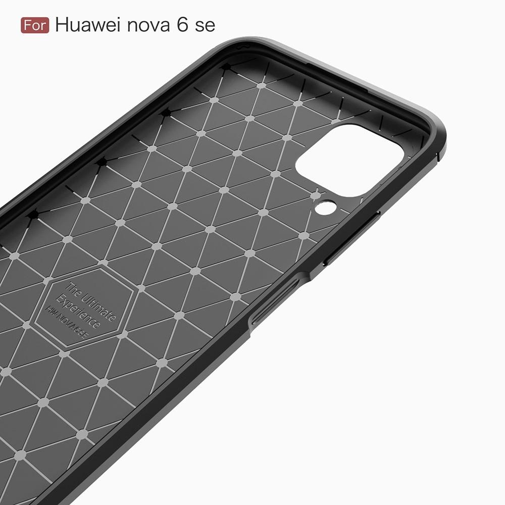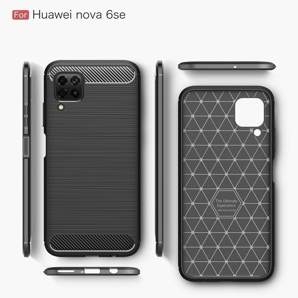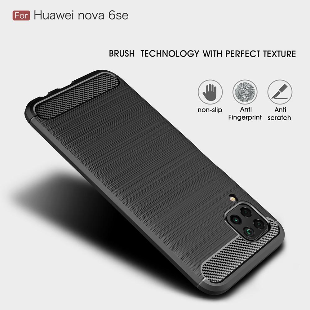 Deksel i støtdempende TPU til Huawei P40 Lite fra tectTech. Dekselet har en stilig børstet bakside og detaljer i karbonfiber.