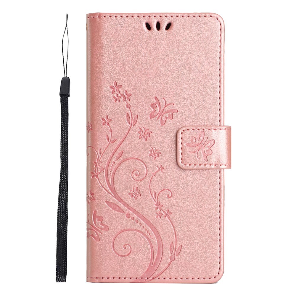 Mobilveske med pregede sommerfugler og mønstre i læret til Motorola Edge 50 Neo. Vesken har et fint utseende og beskytter hele telefonen slik at du unngår skader, riper og smuss.