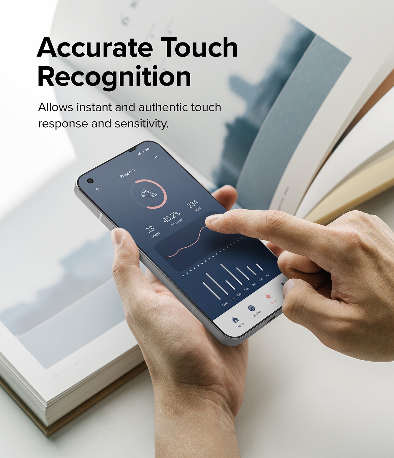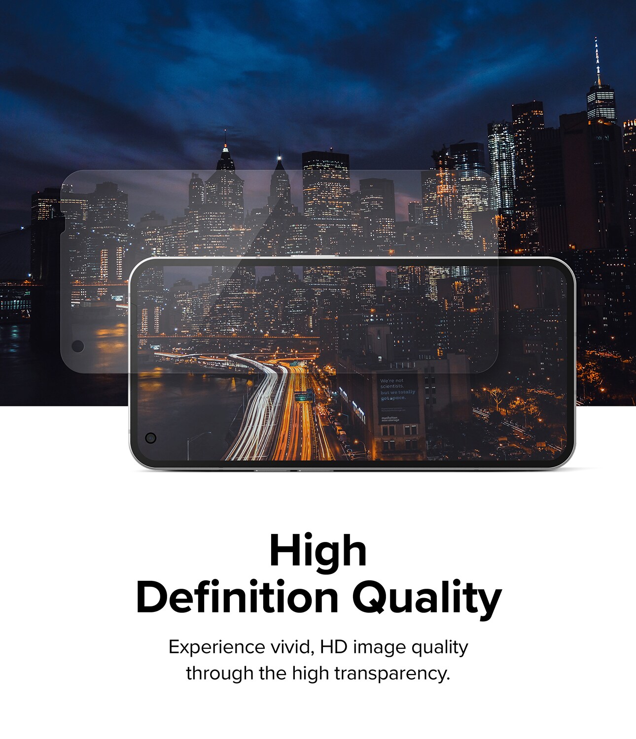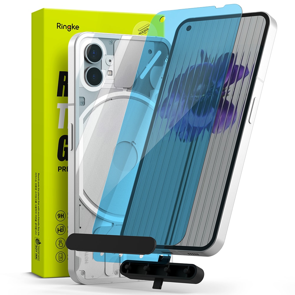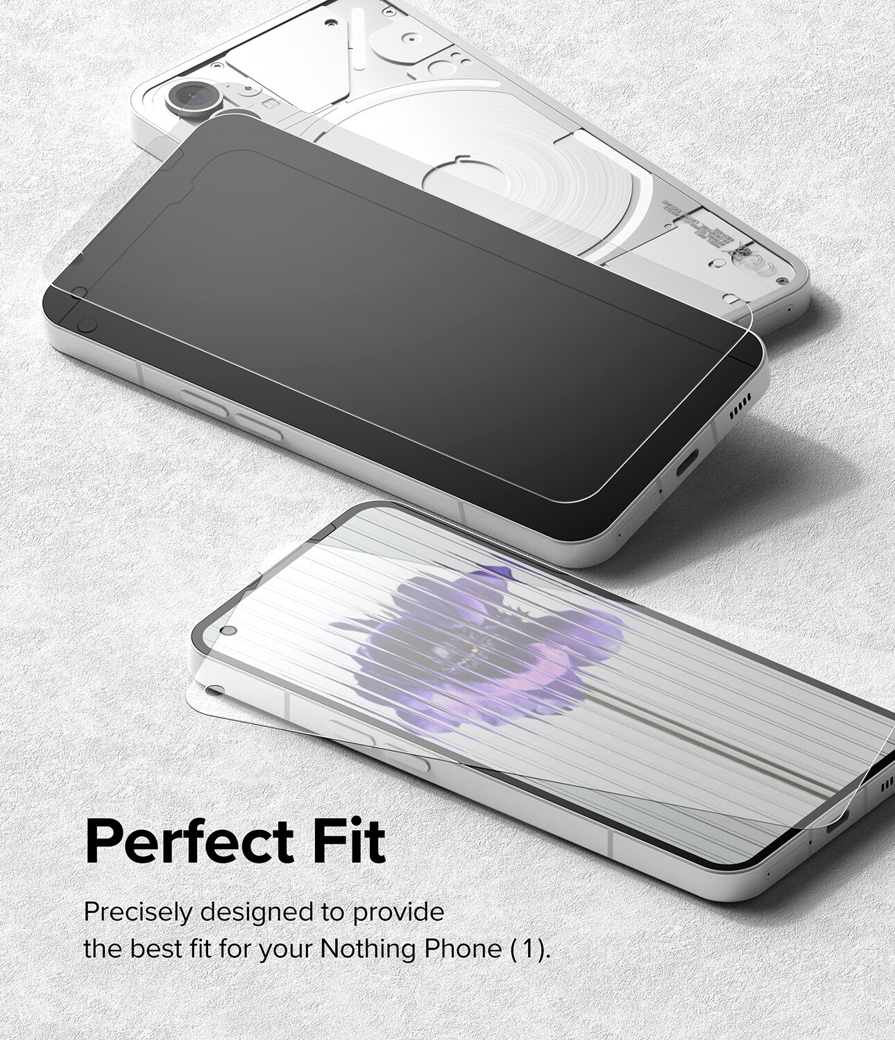 Skjermbeskytt i herdet glass fra Ringke til Nothing Phone 1. Skjermbeskyttet er laget av herdet glass med høy gjennomsiktighet og hardhet. Kantene er fasetterte slik at de ikke er skarpe.
