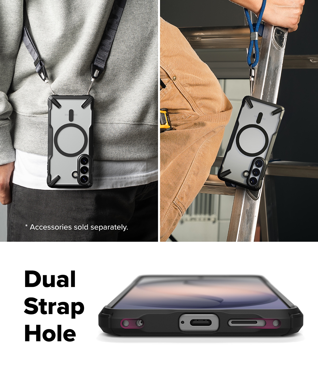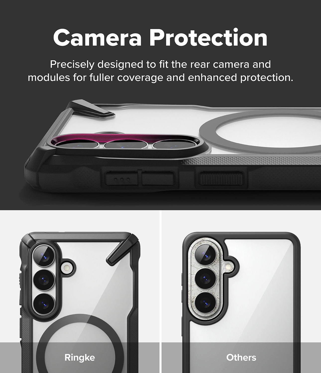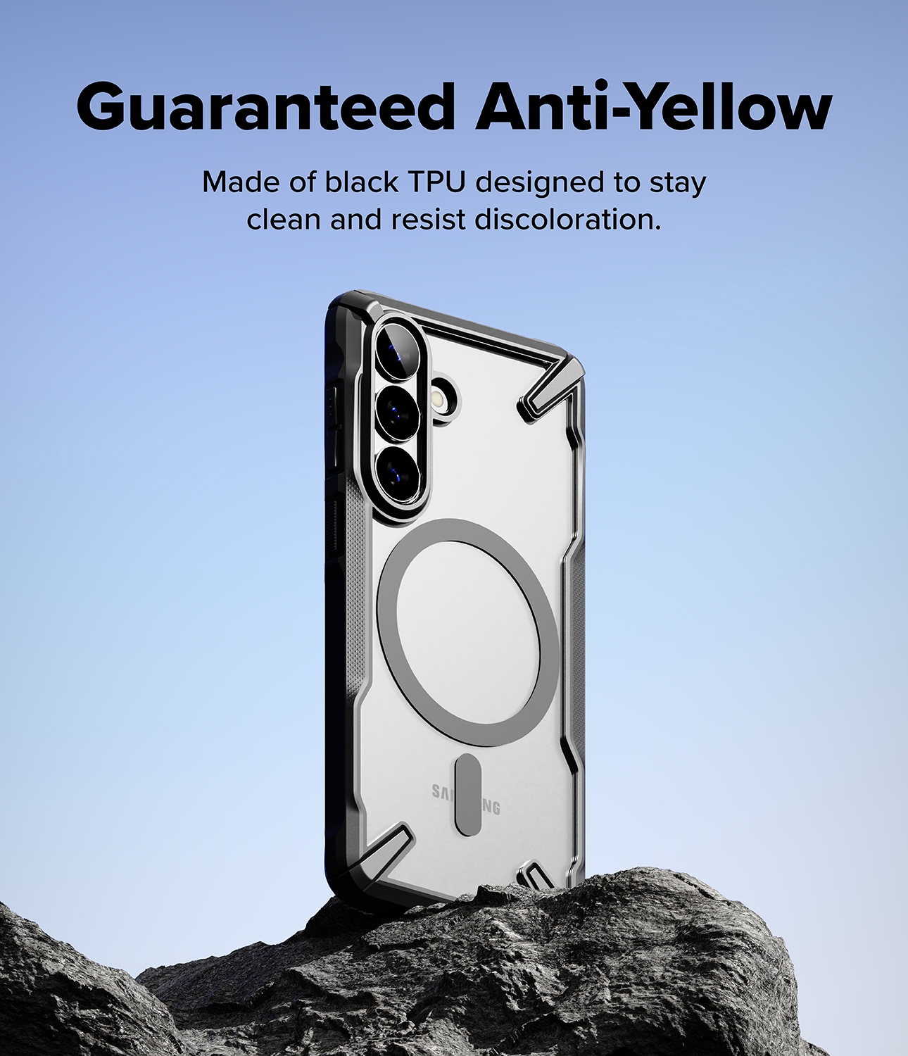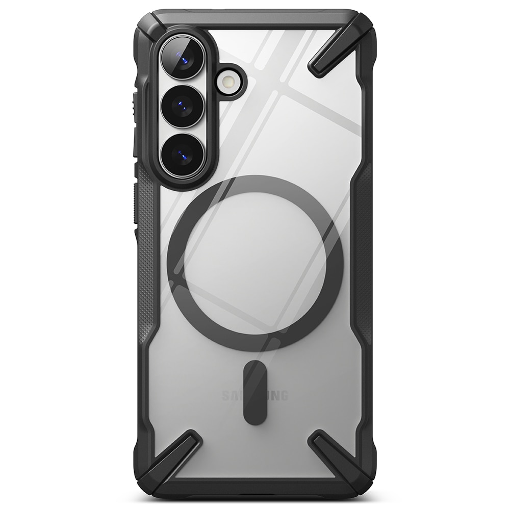 Ringke Fusion X MagSafe deksel til Samsung Galaxy S26. Ringke Fusion X gir telefonen optimal beskyttelse i et stilig design. For best beskyttelse har dekslet en støtabsorberende ramme som absorberer fall, og baksiden er laget av hardt polykarbonat.