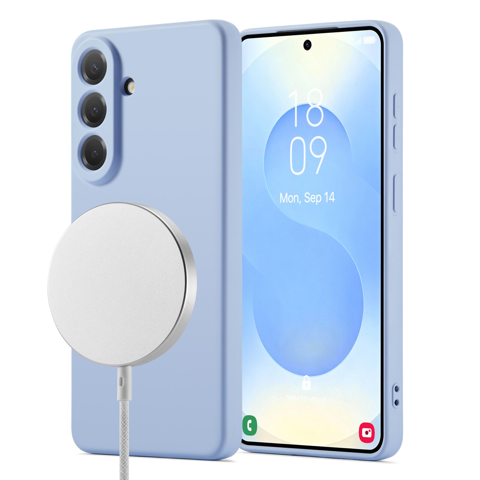 Dekselet har en magnetisk ring på innsiden og er kompatibelt med MagSafe-tilbehør som ladere og kortholdere.