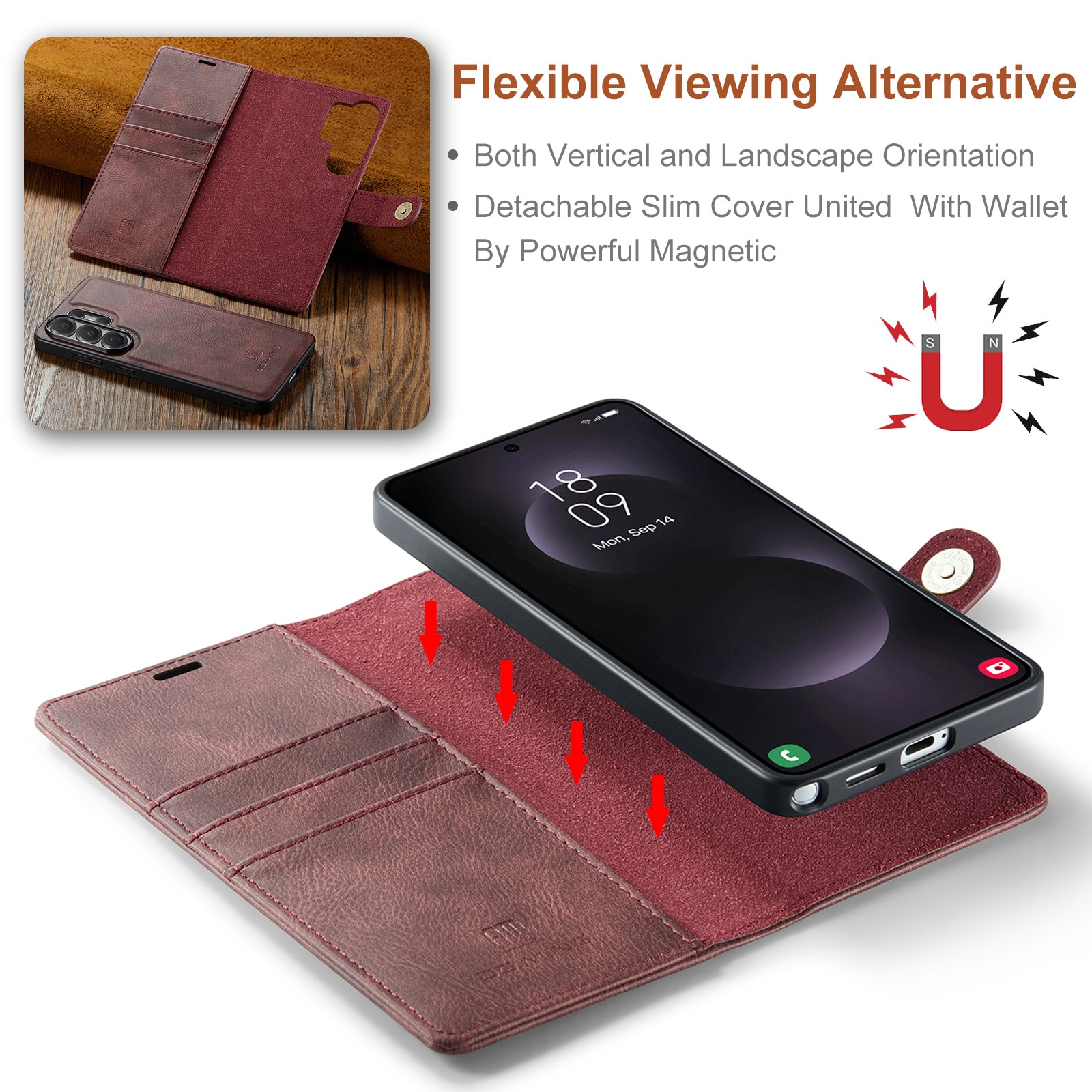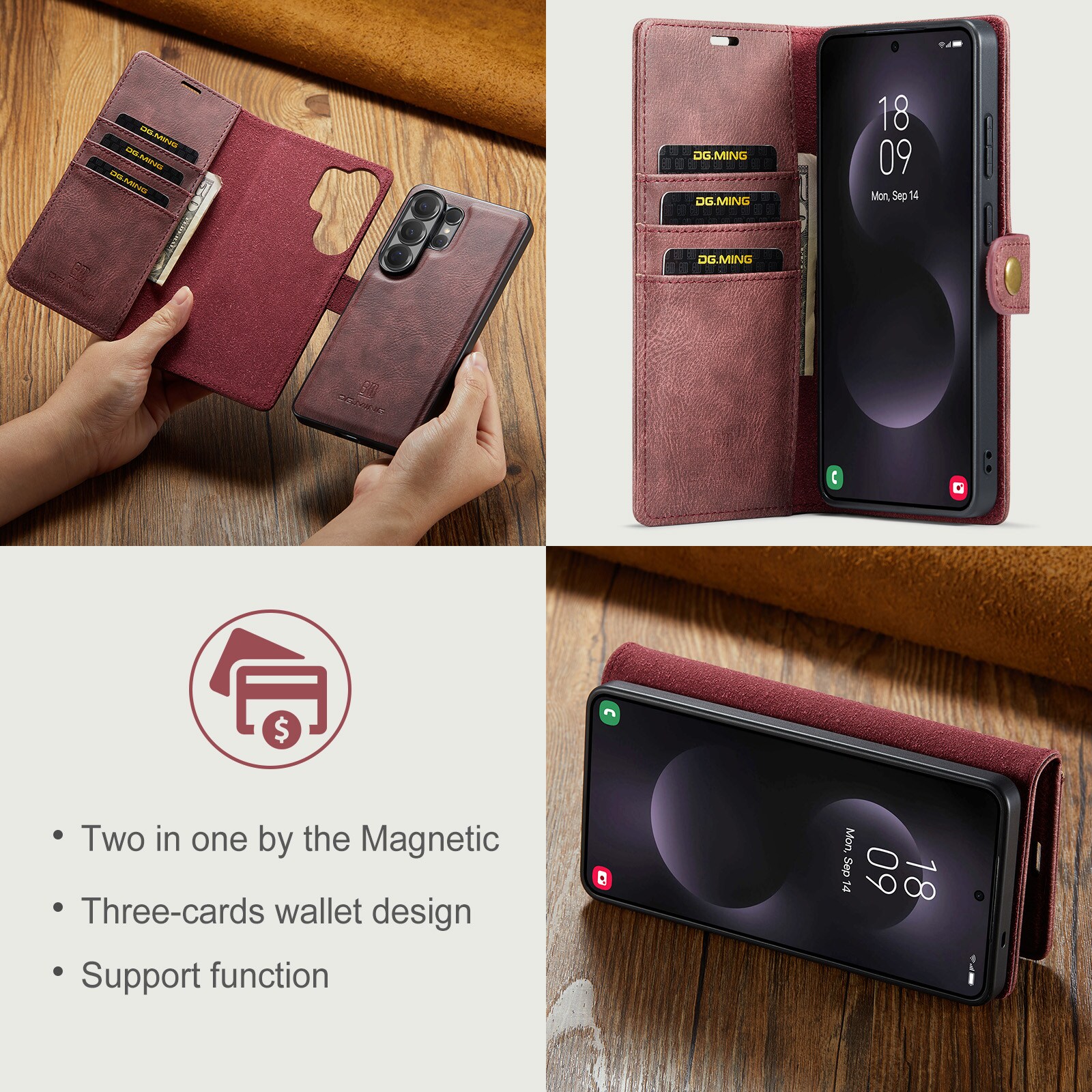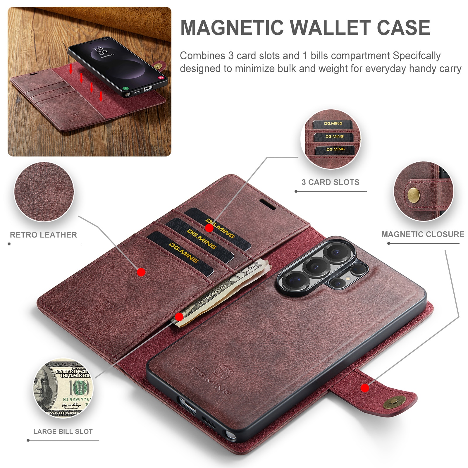 DG.MING - Magnet Wallet Samsung Galaxy S26 Ultra Red