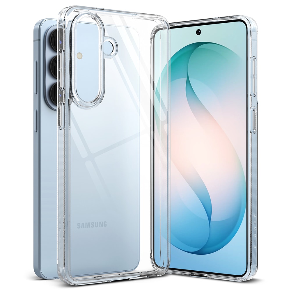 Transparent Ringke Fusion deksel til Samsung Galaxy S26. Ringke Fusion gir telefonen optimal beskyttelse nesten uten å synes. For best beskyttelse har ekslet en støtabsorberende ramme som absorberer fall og en bakside laget av hardt polykarbonat.