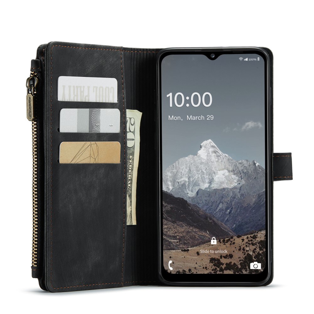 Mobiletui med ekstra romslig lommebok og mange kortlommer til Samsung Galaxy A04s fra CaseMe. Lommeboken har 7 kortlommer, en seddellomme og et romslig myntrom med glidelås.