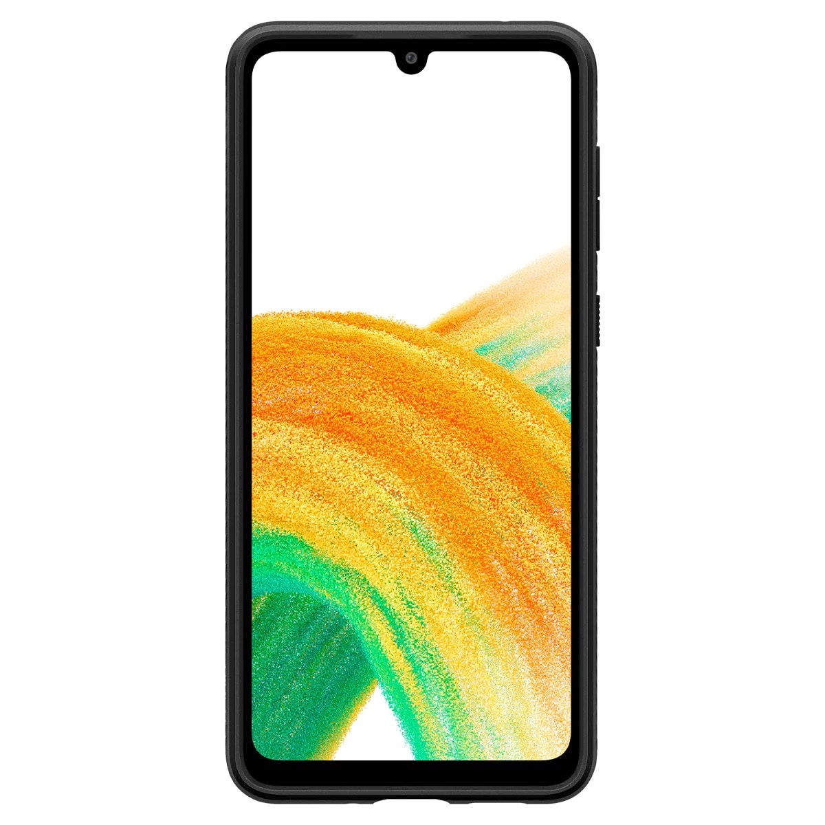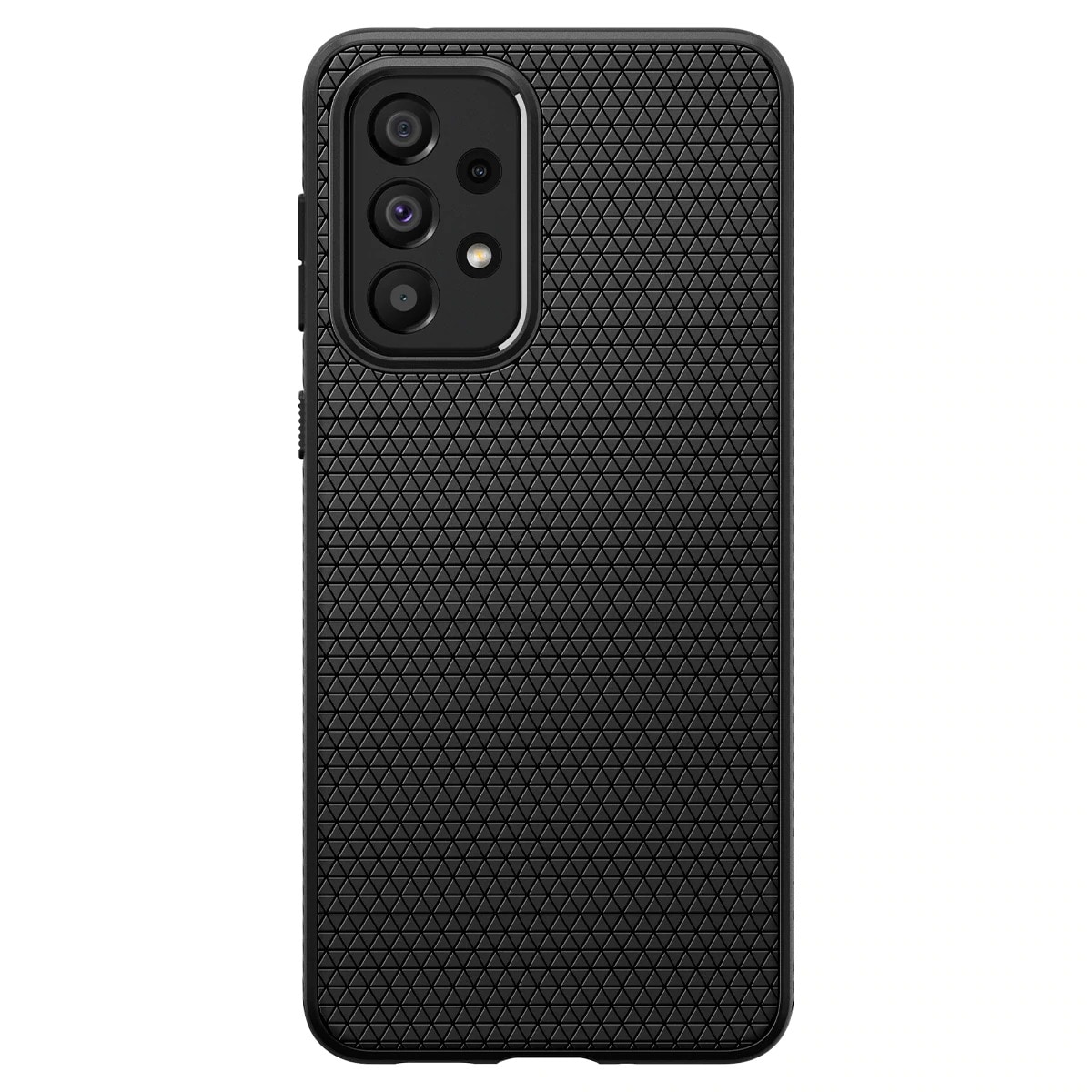 Spigen Liquid Air-deksel til Samsung Galaxy A33. Dekselet har en helt unik design med graverte triangler på baksiden. Dekselet er tynt og er formet for å følge telefonens form, men med enda bedre grep. Overflatebehandling holder dekselet fritt for fingeravtrykk, smuss og riper.