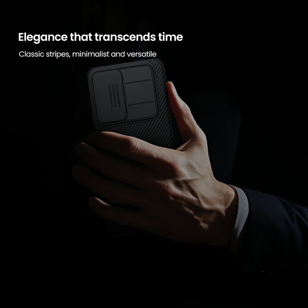 Beskyttende deksel med kameralokk og elegant design for Samsung Galaxy A36 fra Nillkin. Dette dekselet beskytter kameraet ditt mot riper og skader med et praktisk skyvelokk som enkelt trekkes foran kameraet når det ikke er i bruk.