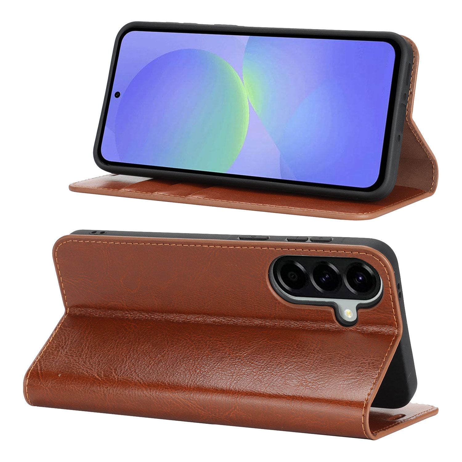 Beskytt din Samsung Galaxy A37 med et etui i ekte skinn. Til tross for den slanke og smarte designen, har etuiet 3 kortlommer og 1 seddellomme på innsiden av lokket. Telefonen festes trygt i et fleksibelt deksel som holder den sikkert på plass.