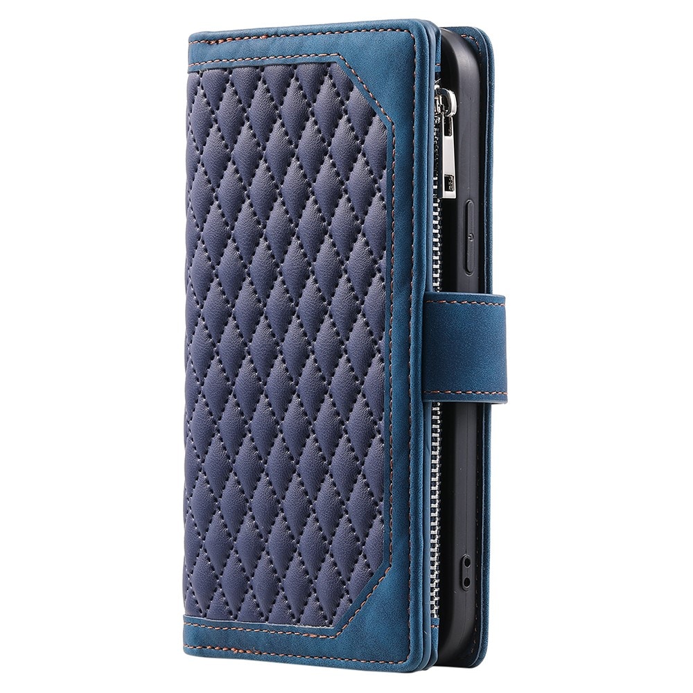 Multifunksjonelt mobiletui til Samsung Galaxy A56 med stilig vattert utside. Etuiet er laget av kunstskinn og har et støtdempende innerdeksel i TPU som gir god beskyttelse for mobilen din.
