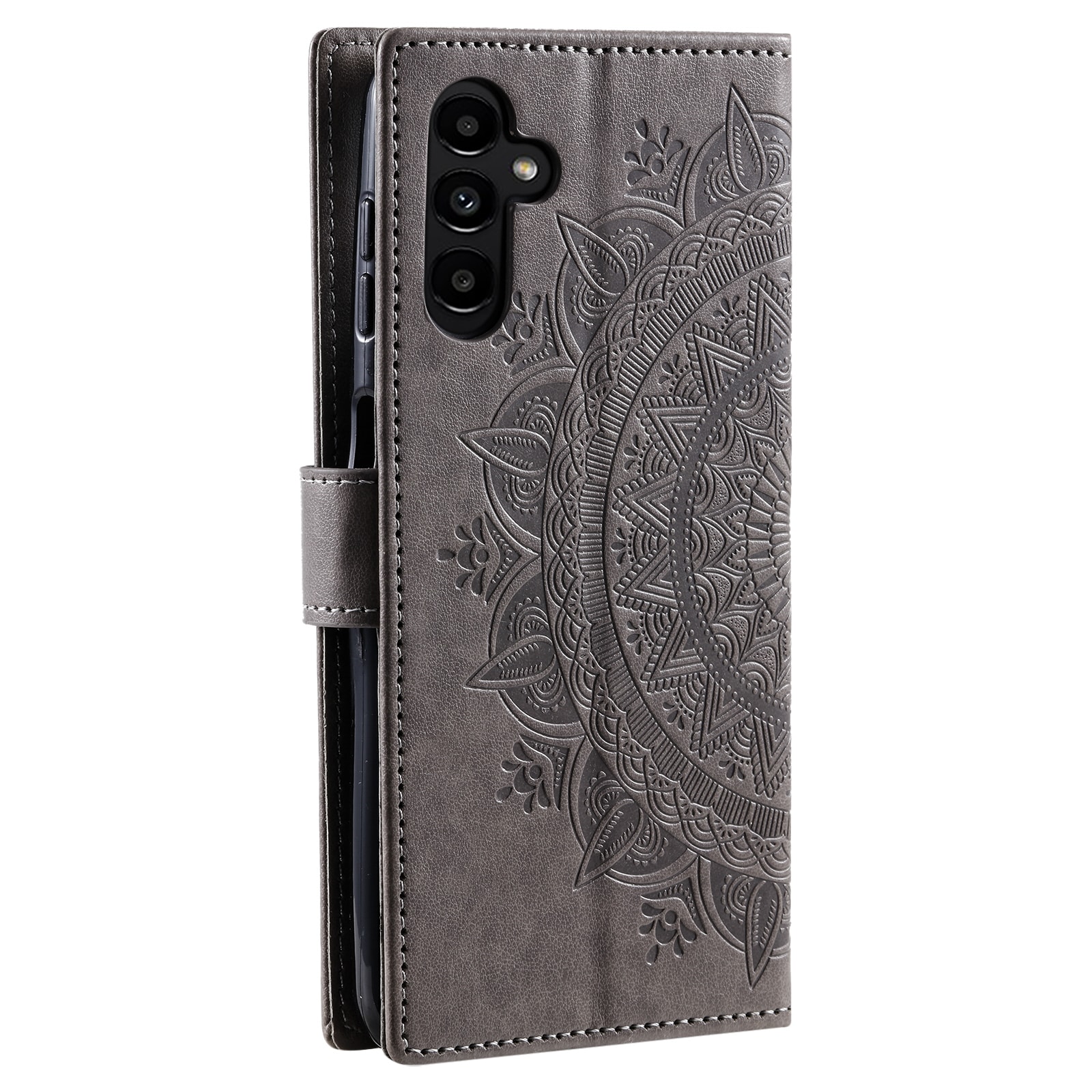 Mobilveske med pregede mandala og mønstre i læret til Samsung Galaxy A57. Vesken har et fint utseende og beskytter hele telefonen slik at du unngår skader, riper og smuss.
