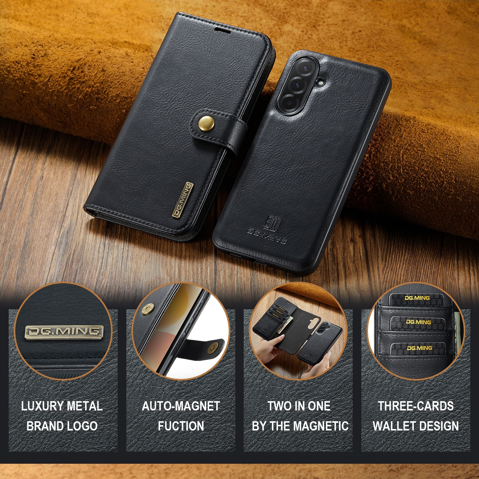 DG.MING etui med avtagbart magnetiskt deksel til Samsung Galaxy A57. Vesken har en klassisk og stilig design. Det avtagbare skallet betyr at du ikke trenger å bruke hele etui, for eksempel når du er hjemme eller på jobb.