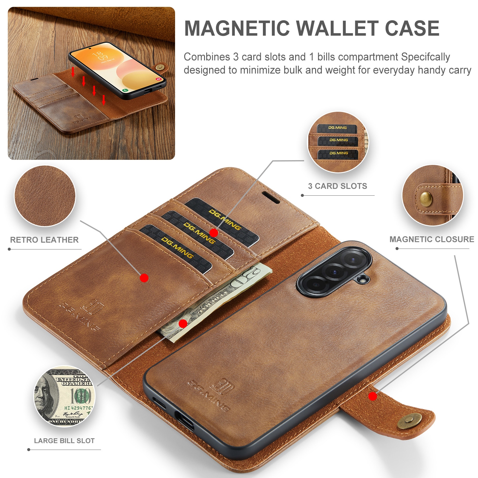 DG.MING etui med avtagbart magnetiskt deksel til Samsung Galaxy A57. Vesken har en klassisk og stilig design. Det avtagbare skallet betyr at du ikke trenger å bruke hele etui, for eksempel når du er hjemme eller på jobb.