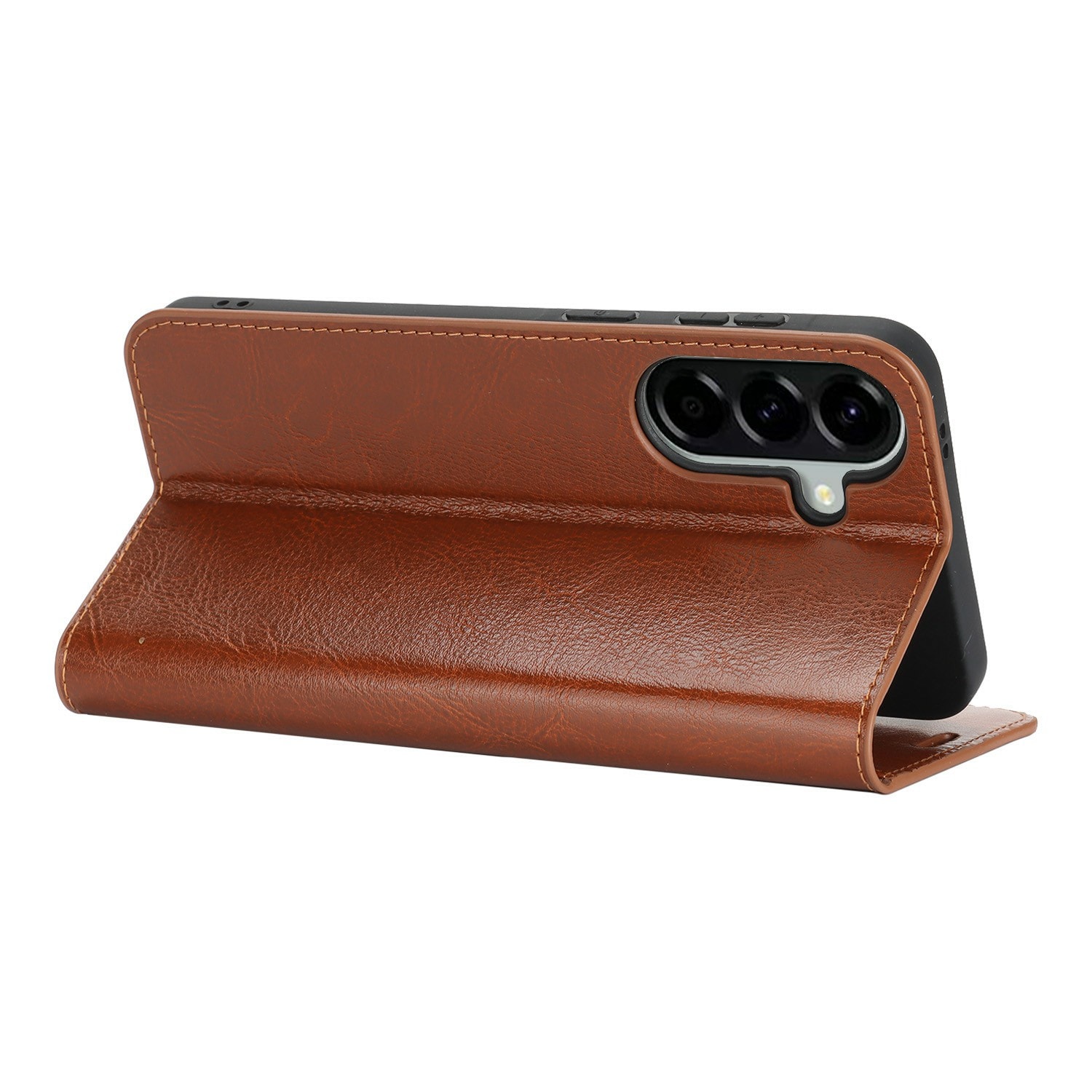 Beskytt din Samsung Galaxy A57 med et etui i ekte skinn. Til tross for den slanke og smarte designen, har etuiet 3 kortlommer og 1 seddellomme på innsiden av lokket. Telefonen festes trygt i et fleksibelt deksel som holder den sikkert på plass.