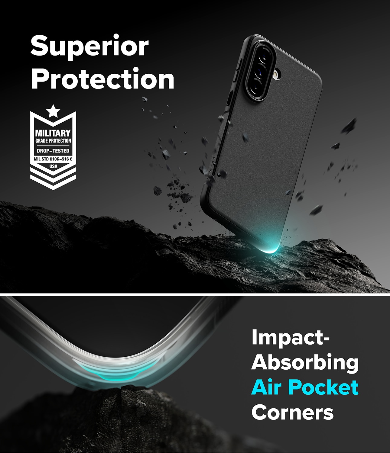 - Deksel med MIL-STD 810G-516.6 Certified Military Grade Drop Protection